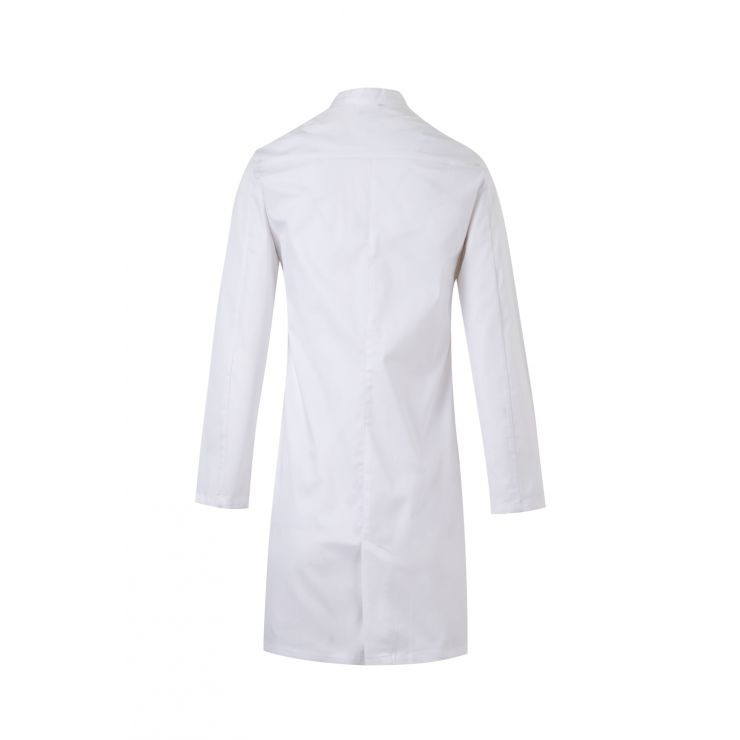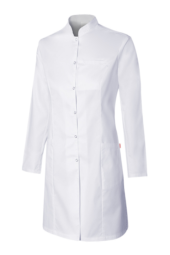 Bata sanitaria de mujer Velilla con cuello mao y tejido elástico de manga larga.