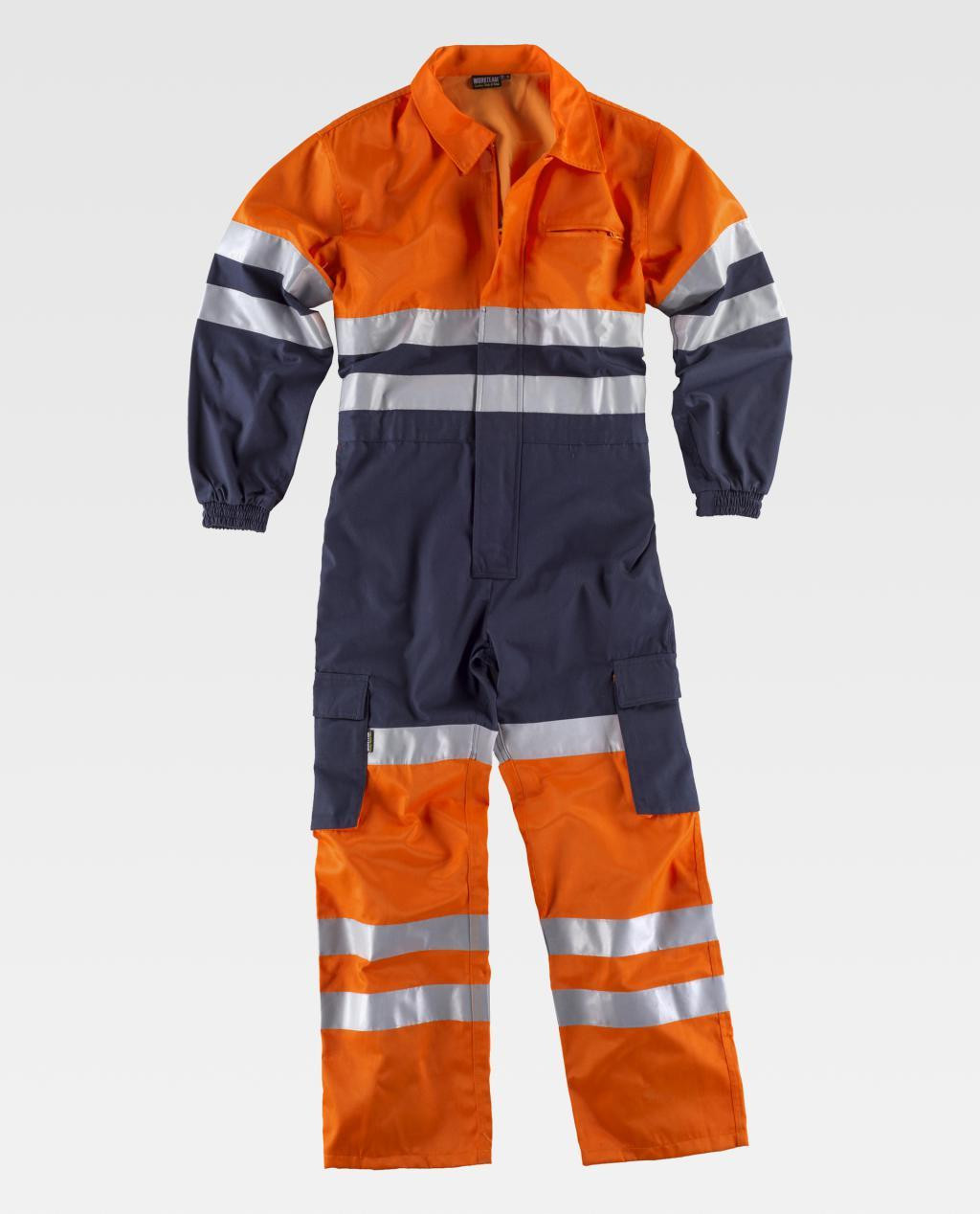 Buzo combinado con alta visibilidad y cintas reflectantes.