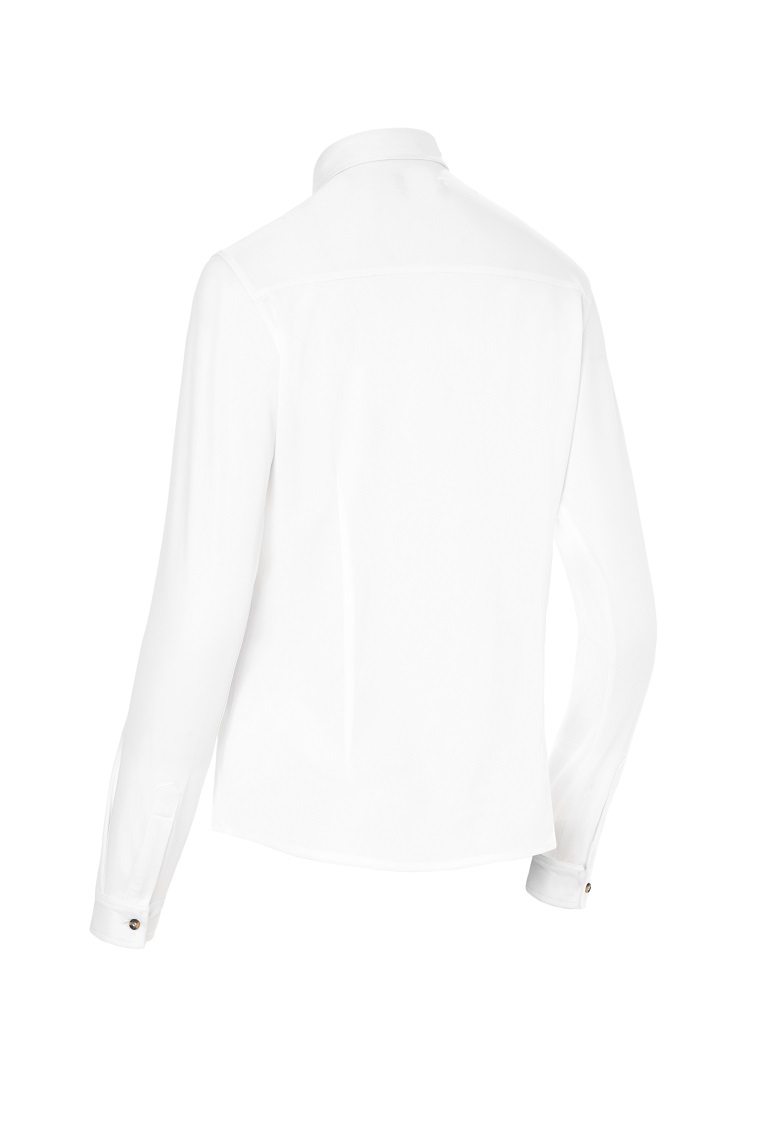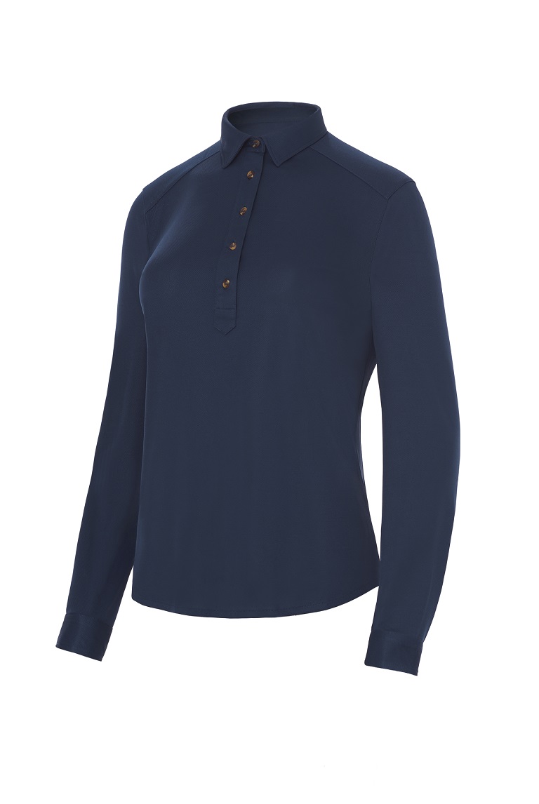 Polo de mujer de manga larga con cuello de camisa. Tejido de punto