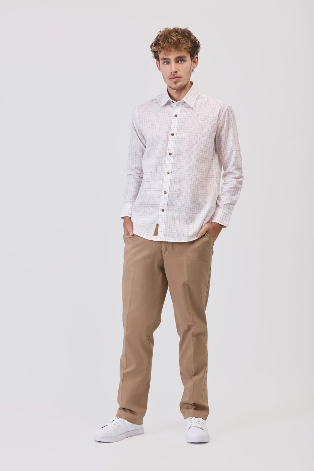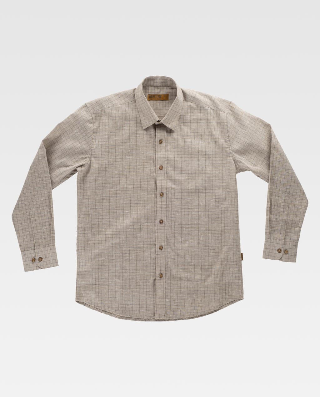 Camisa de cuadros de cuello clásico y cierre central de botones. Manga larga con puño de botón.