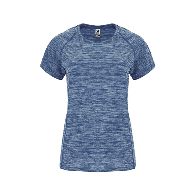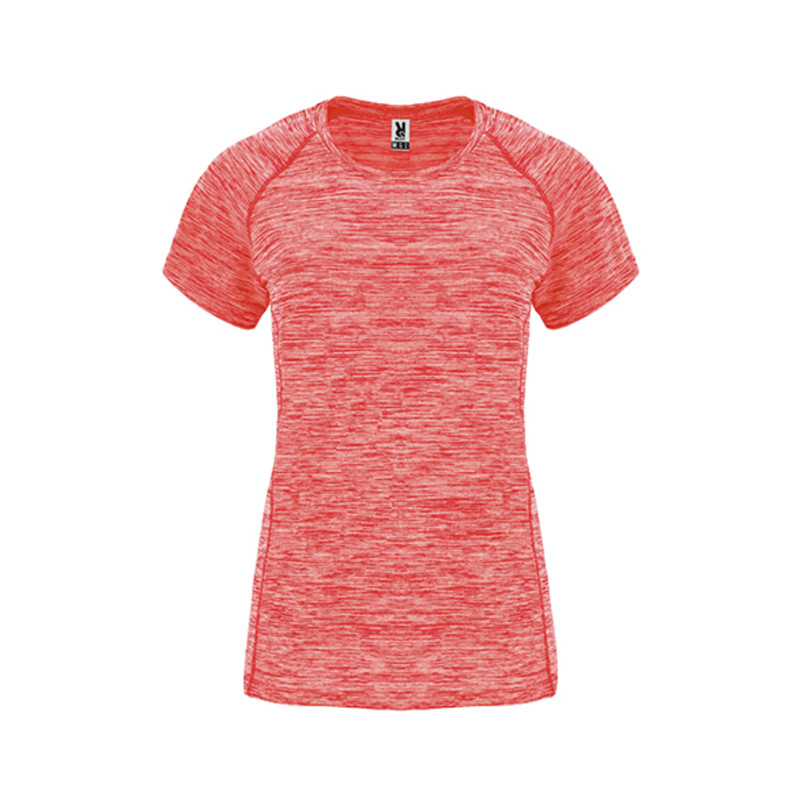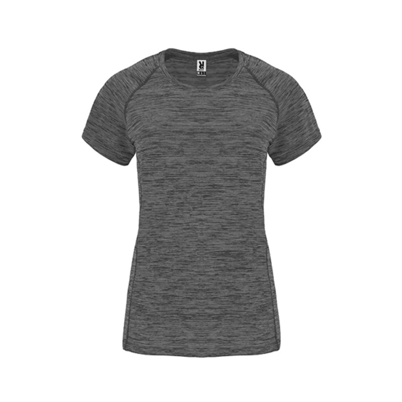 Camiseta técnica entallada de mujer en tejido poliéster de manga corta estilo ranglán.