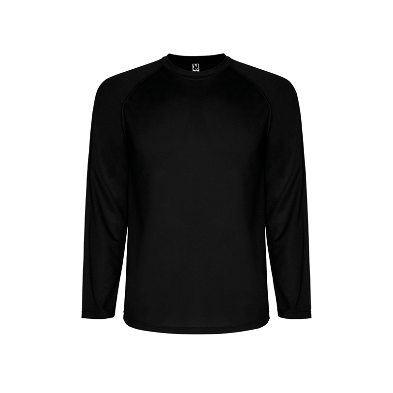 Camiseta técnica de manga larga ranglán, remallada al tono en mangas (sin cortes laterales).