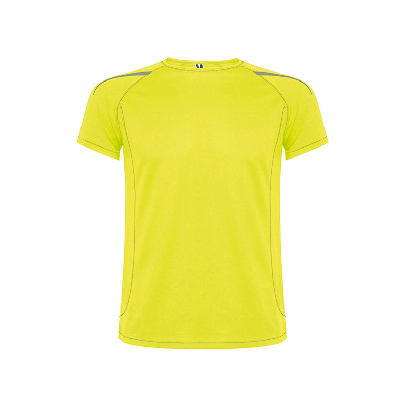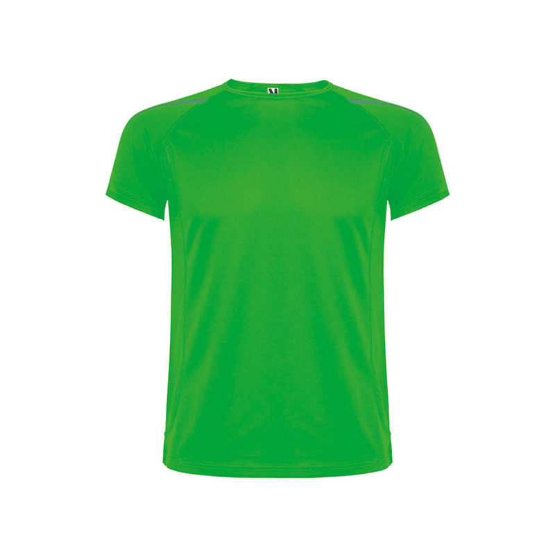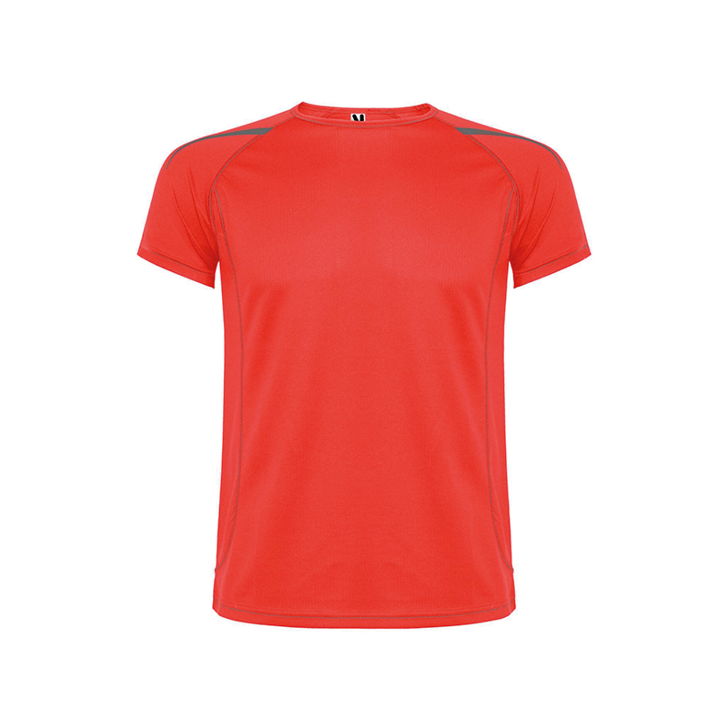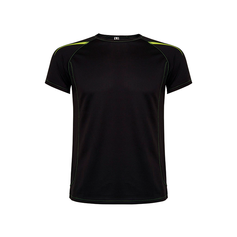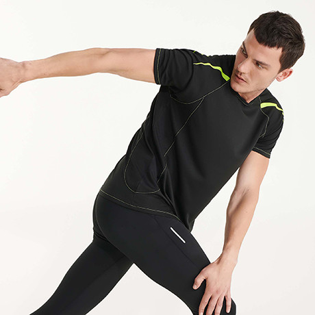 Camiseta técnica de hombre en tejido punto liso, de manga corta ranglán, con costuras en contraste en bocamangas, bajo, cuello y laterales.