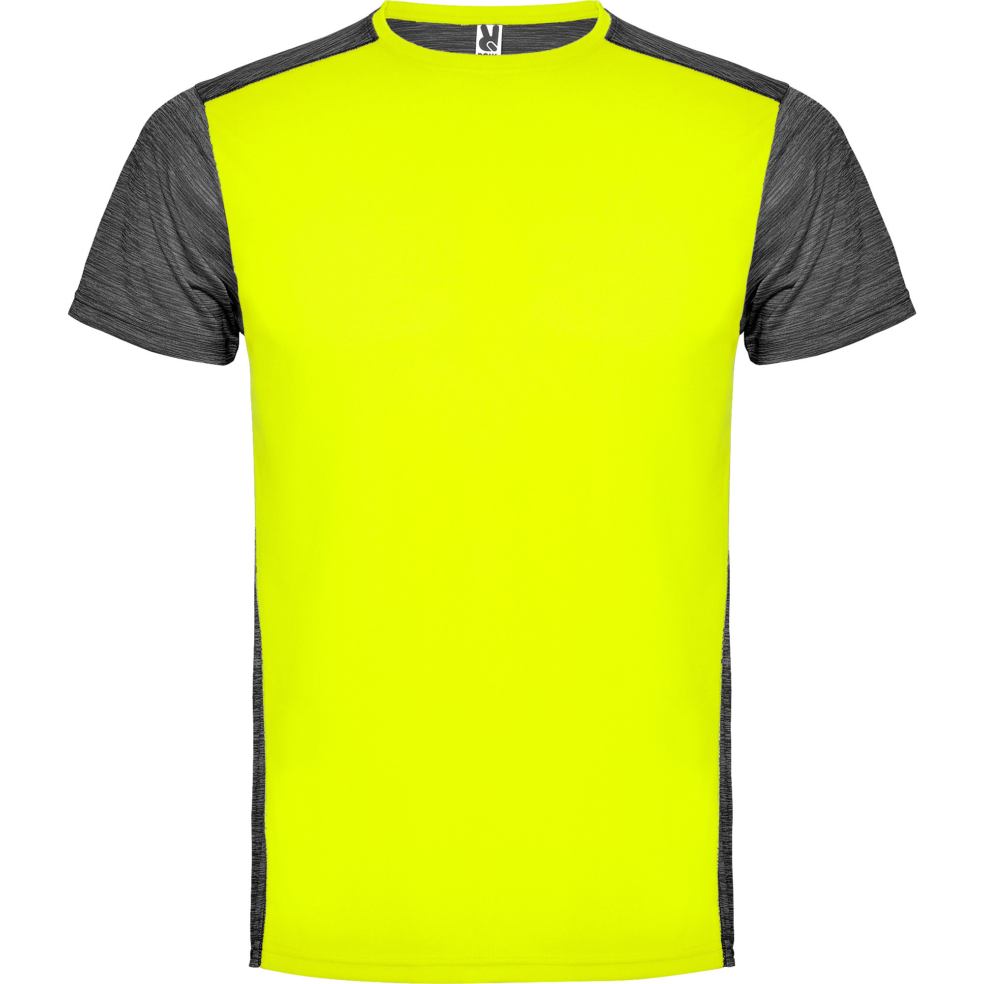 - Tejido delantero: 100% poliéster bird´s eye. Tejido trasero: 100% poliéster space dye , 135 g/m².