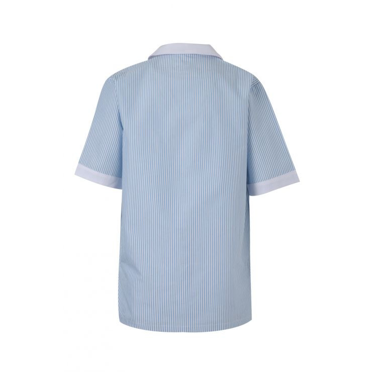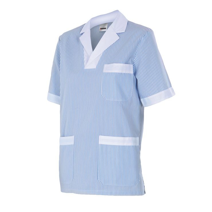 Casaca de limpieza Velilla para mujer a rayas con bolsillos.
