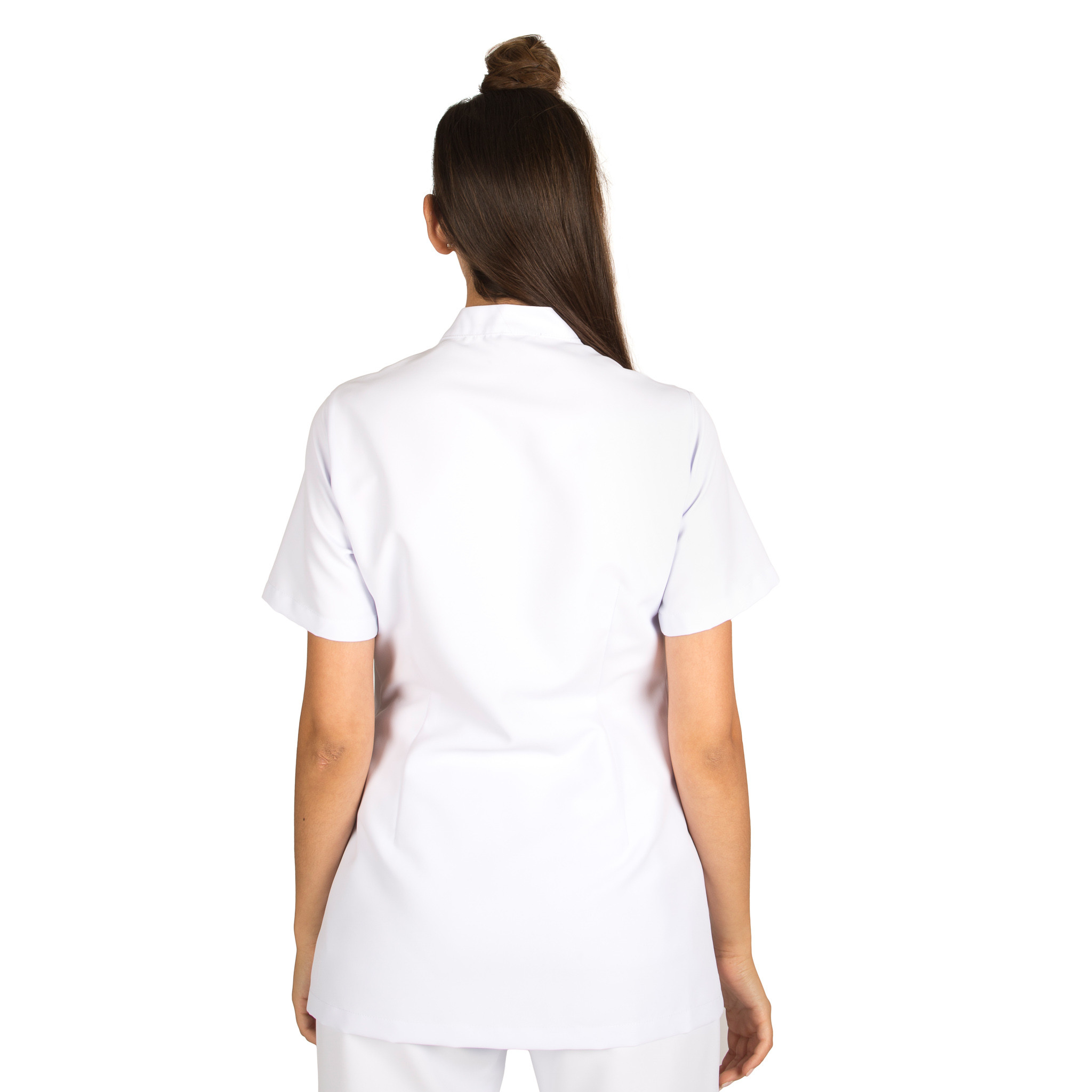 Blusa laboral sanitaria de mujer de microfibra antibacterias con cierre de botón en cuello y cremallera