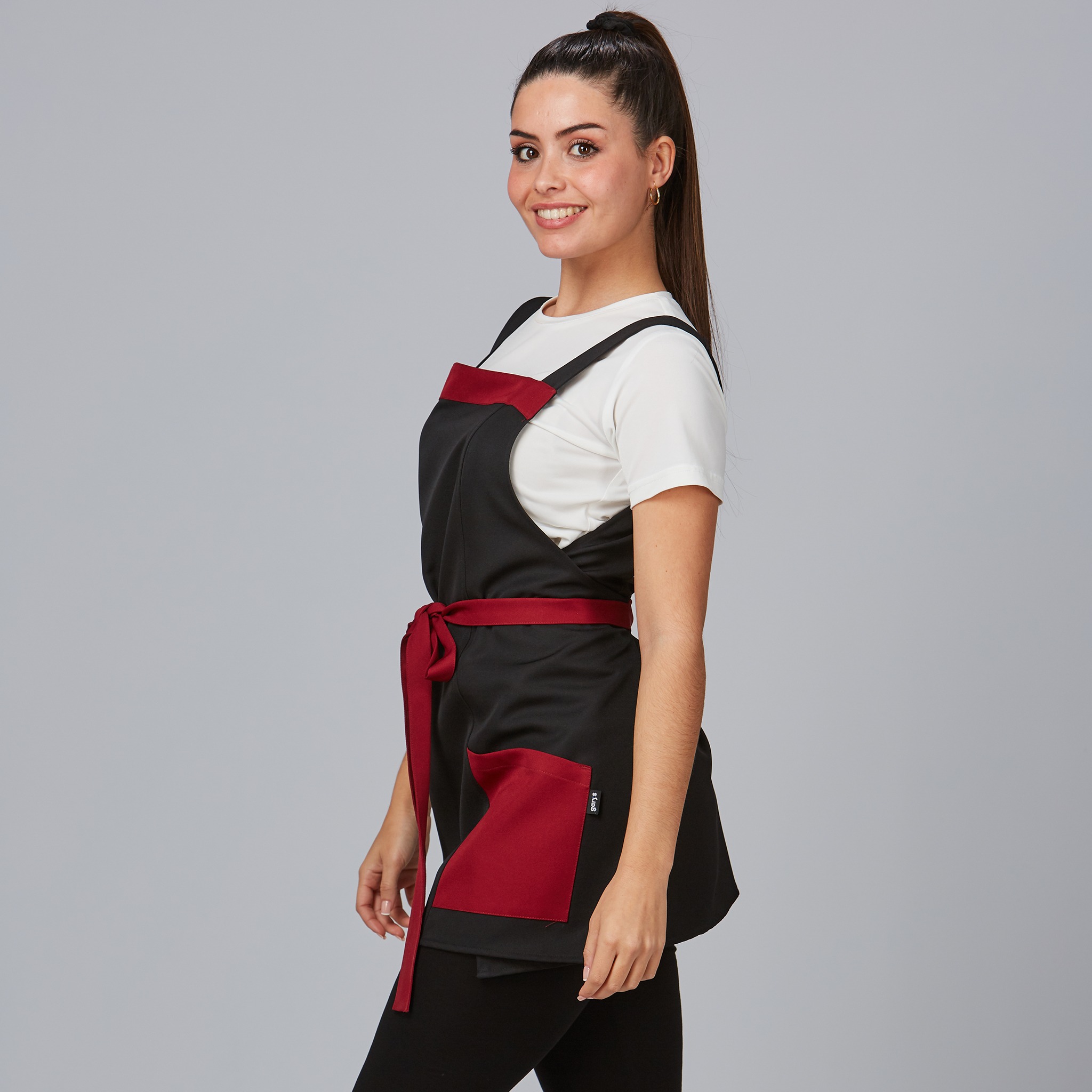Las tiras laterales de la Casulla PROTEA, atadas en forma de lazo, permiten un ajuste personalizado que se adapta a tu figura, brindando una movilidad sin restricciones y una comodidad excepcional durante toda la jornada laboral.