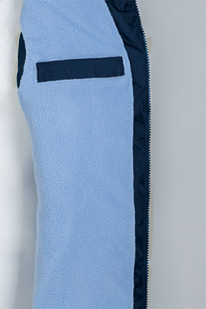 Cuello alto y cremallera frontal entera. Dos bolsillos delanteros oblicuos con cremallera y un bolsillo en pecho izquierdo con cremallera. Un bolsillo en la cara interior. Cordón regulador con frenos en cintura, para un mejor ajuste de la prenda.