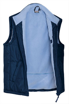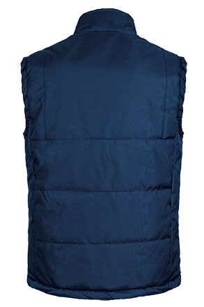 Chaleco de abrigo de diseño en colores combinados, confeccionado en tejido Oxford hidrofugado con recubrimiento de poliuretano, con relleno acolchado y forro interior polar a contraste, que le aporta mayor efecto calórico.