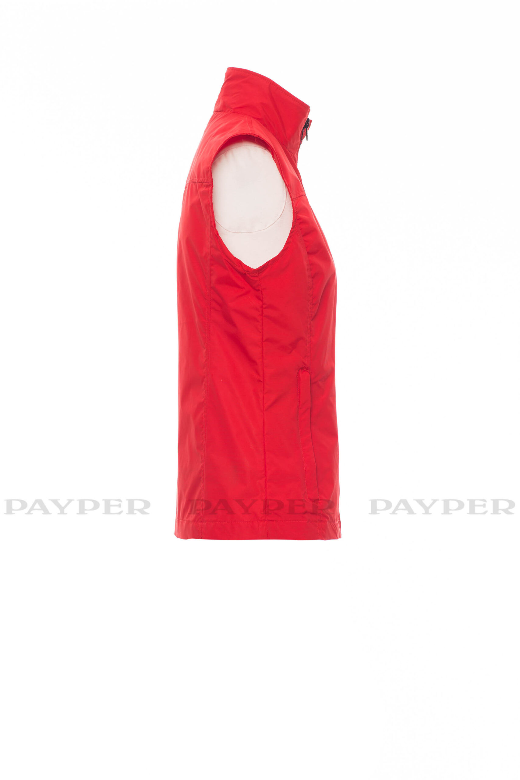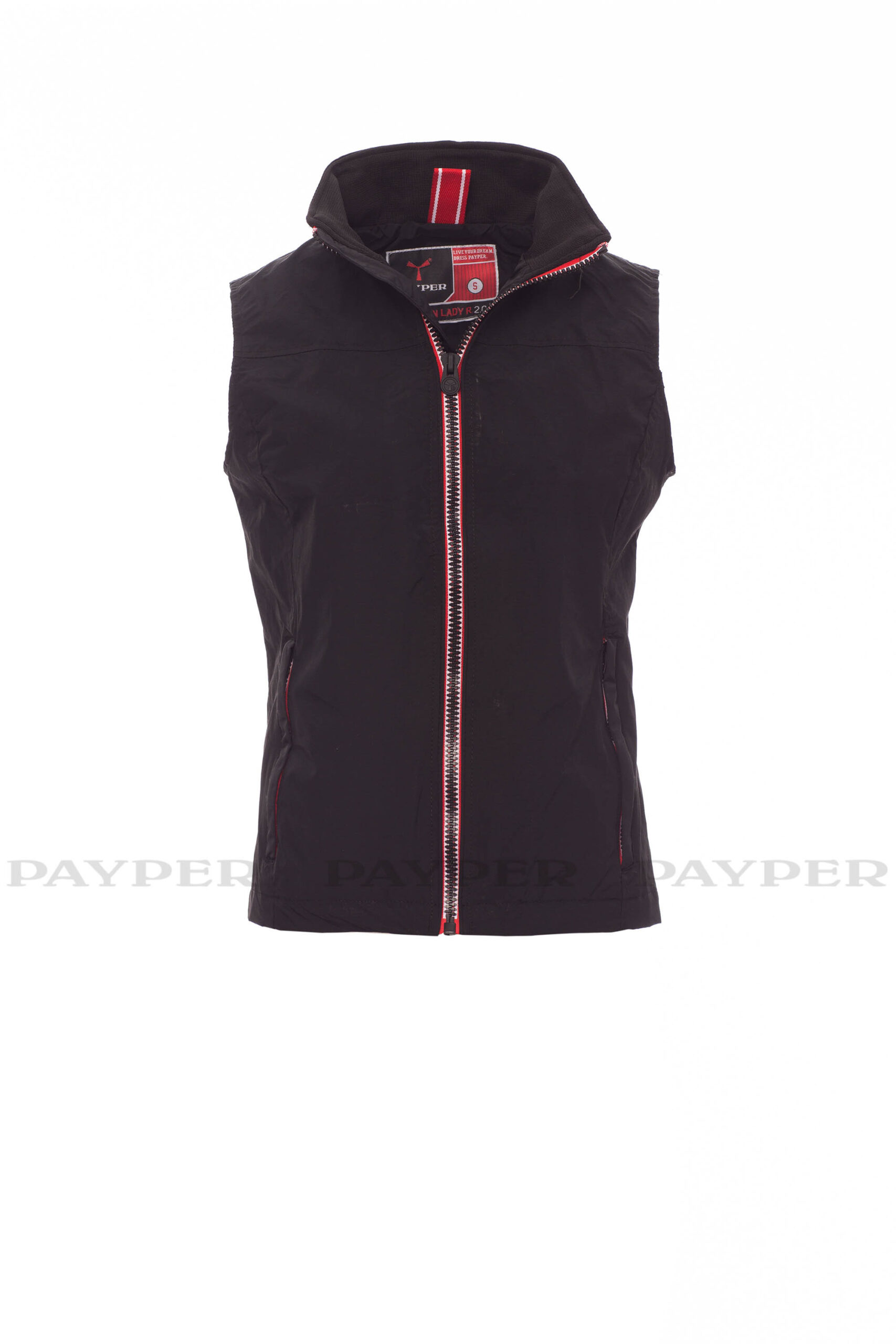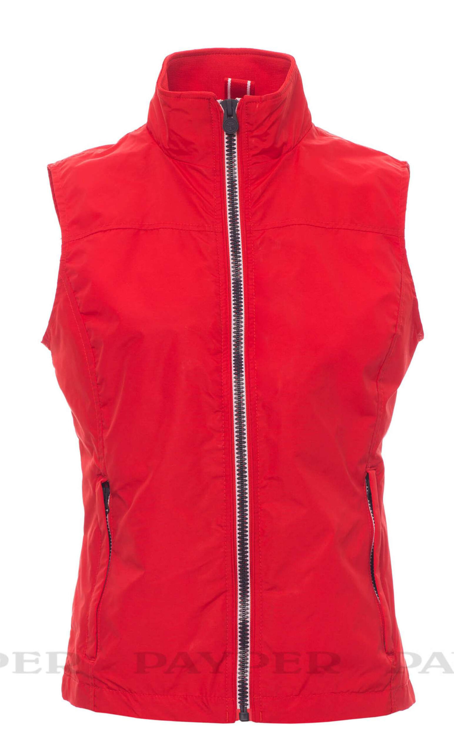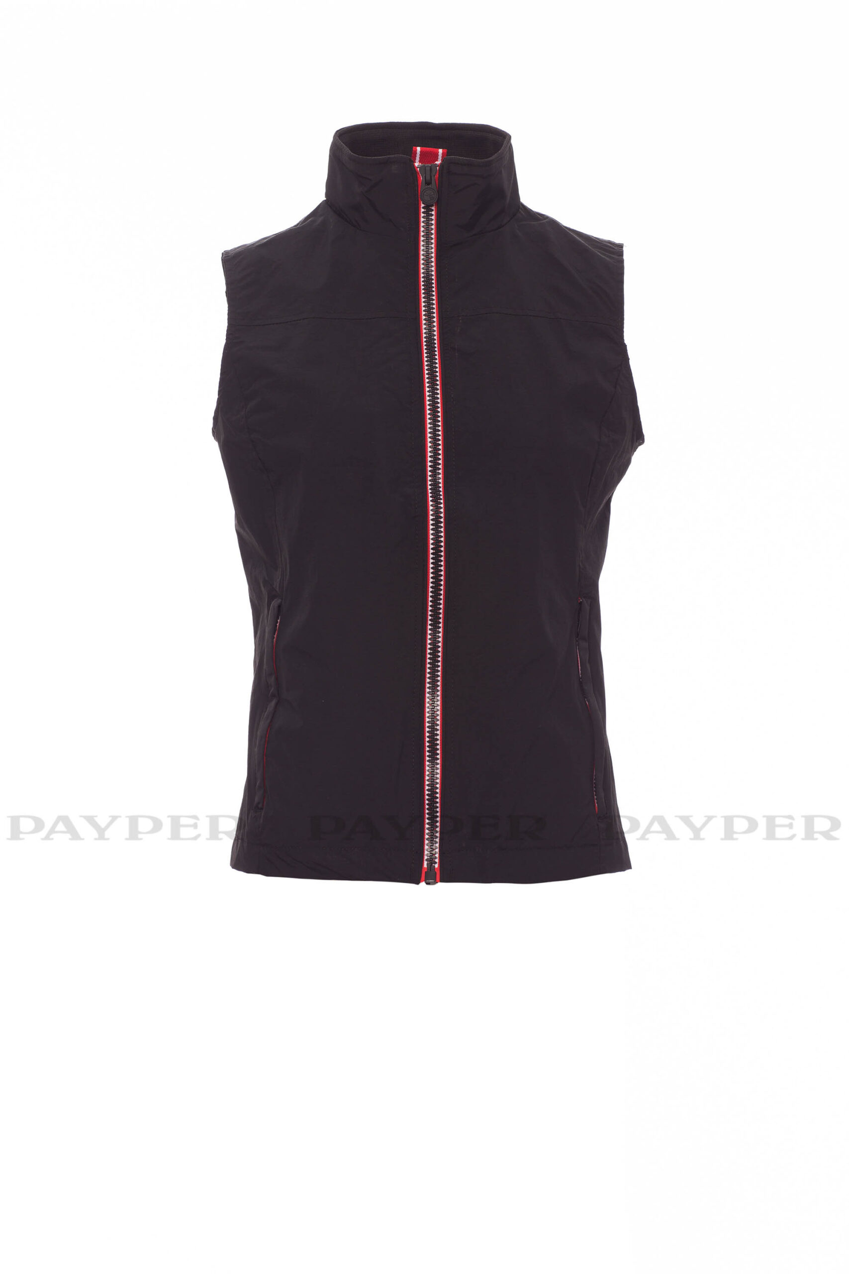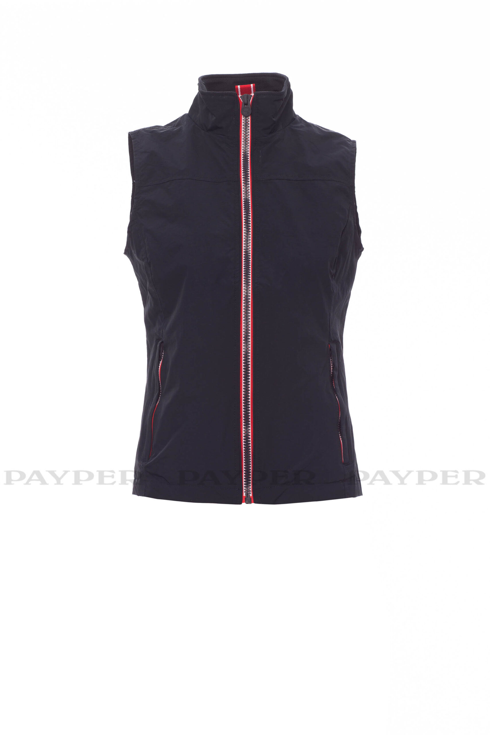 Chaleco ergonómico para mujer, cremallera de 8 mm de color contrastante, dos bolsillos externos con cremallera cubierta.