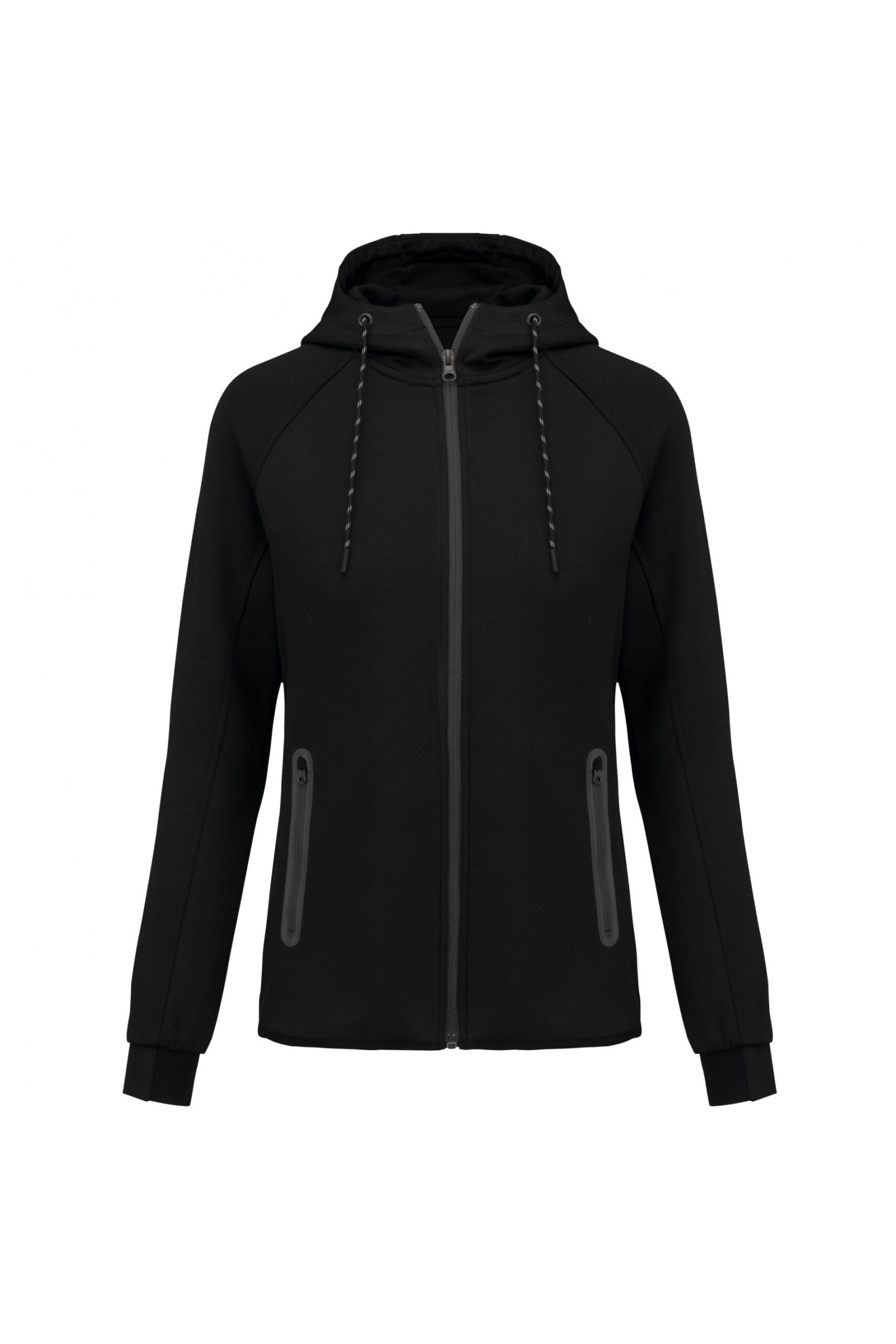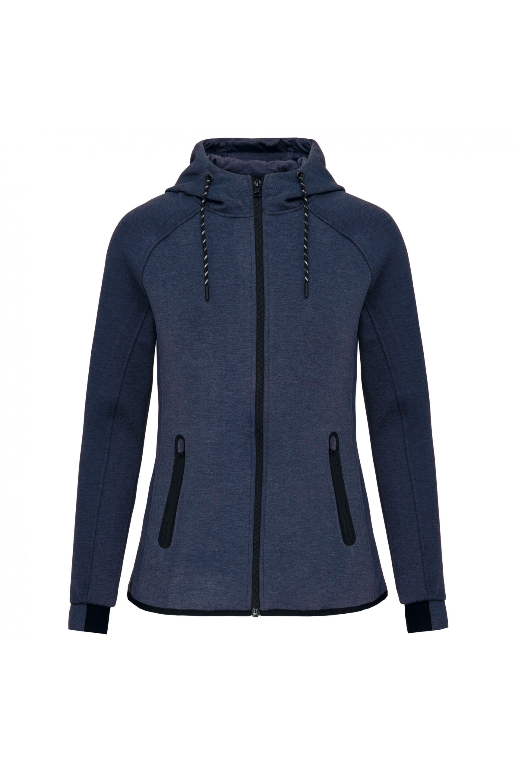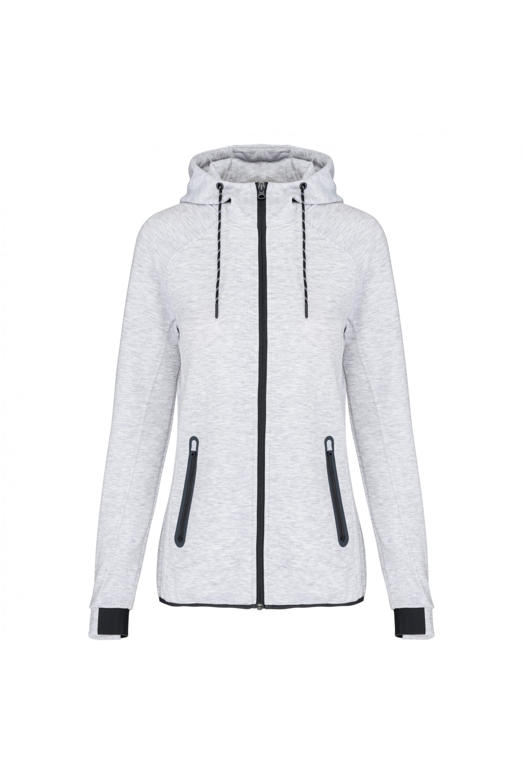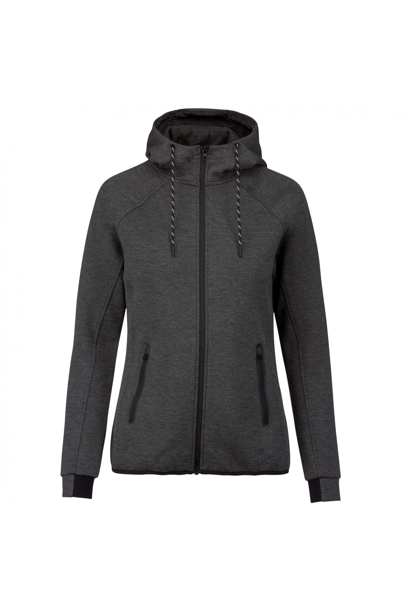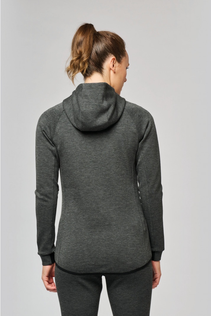 Sudadera deportiva de mujer con capucha y tejido elástico.