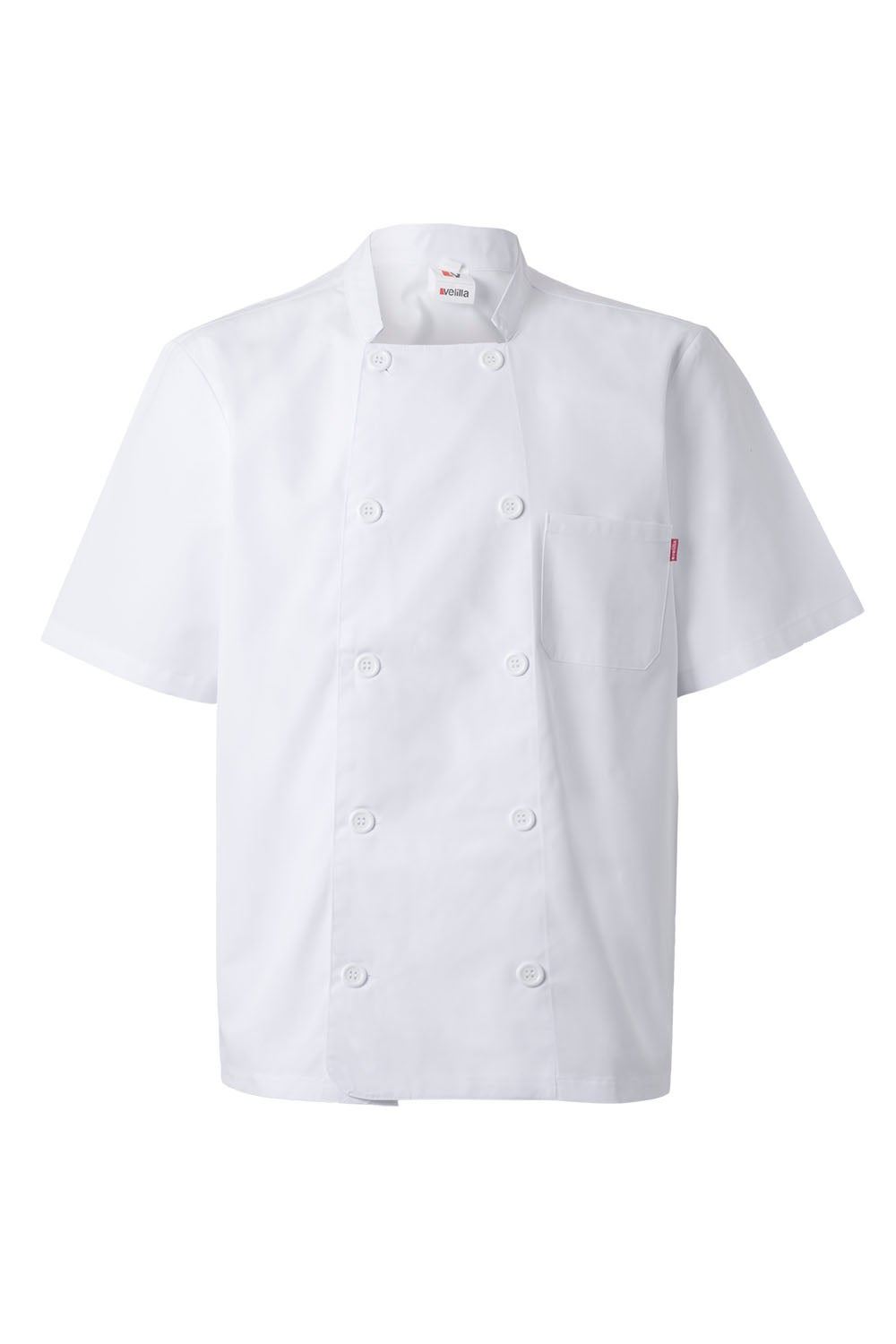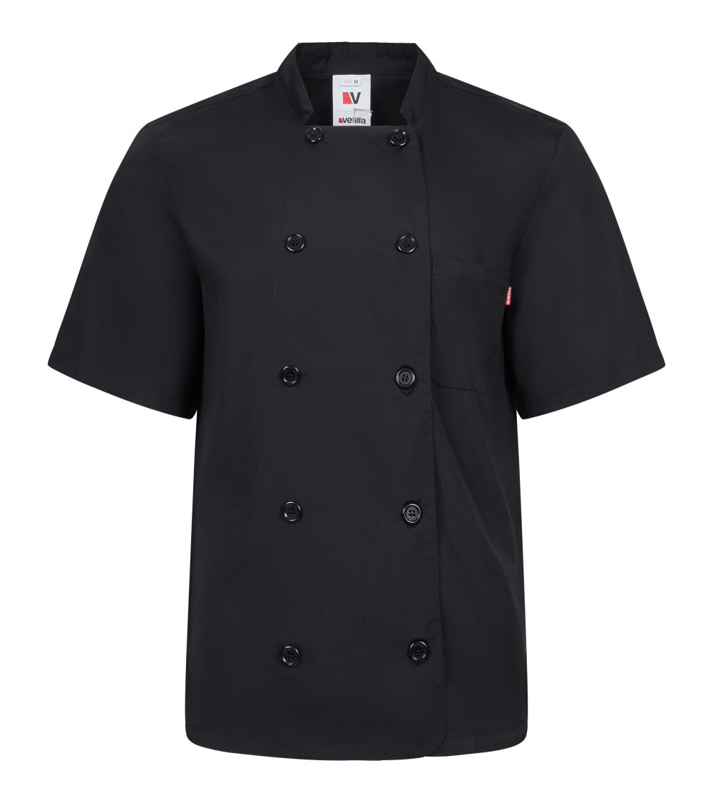 Chaqueta de cocina unisex de manga corta con cierre de botones.