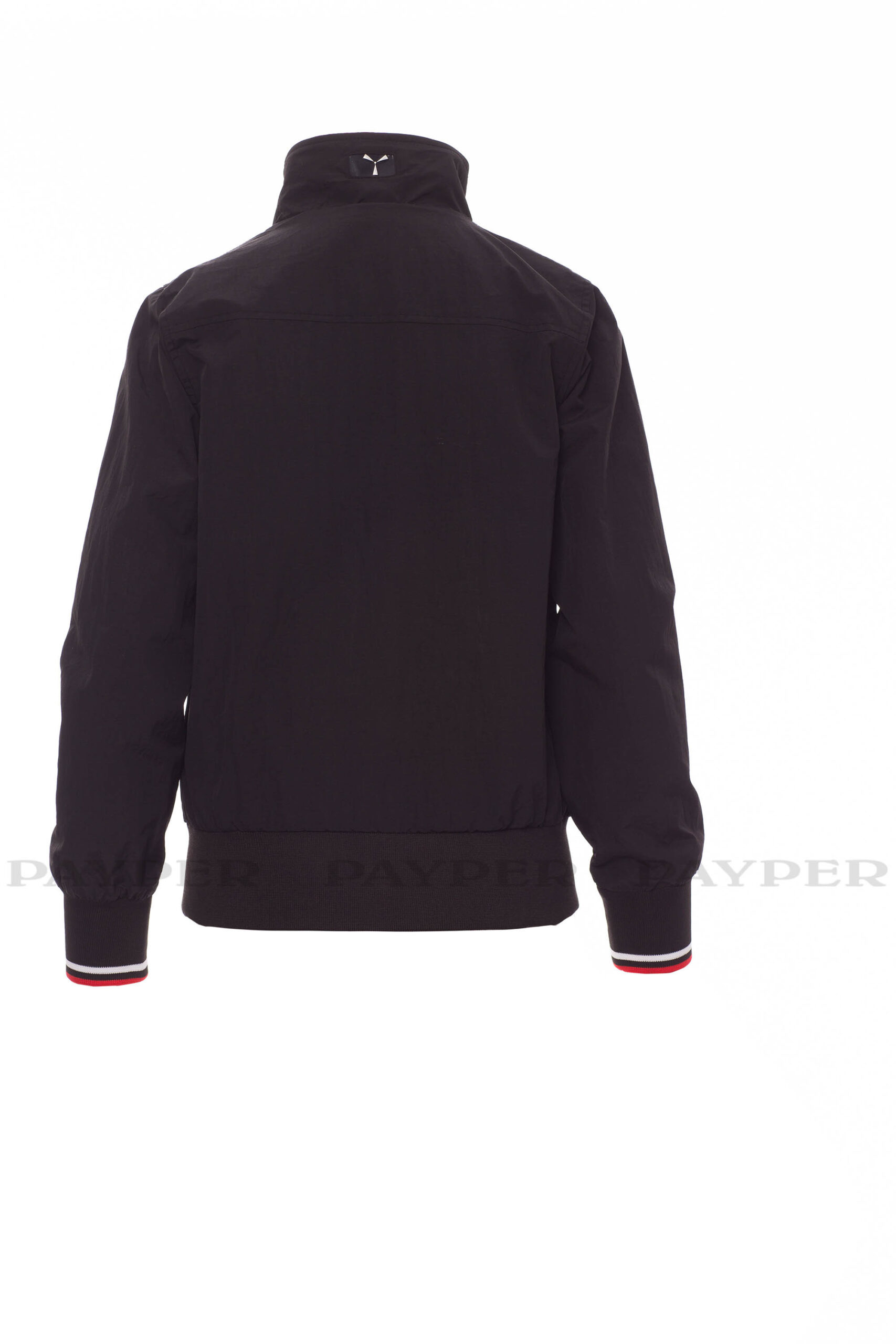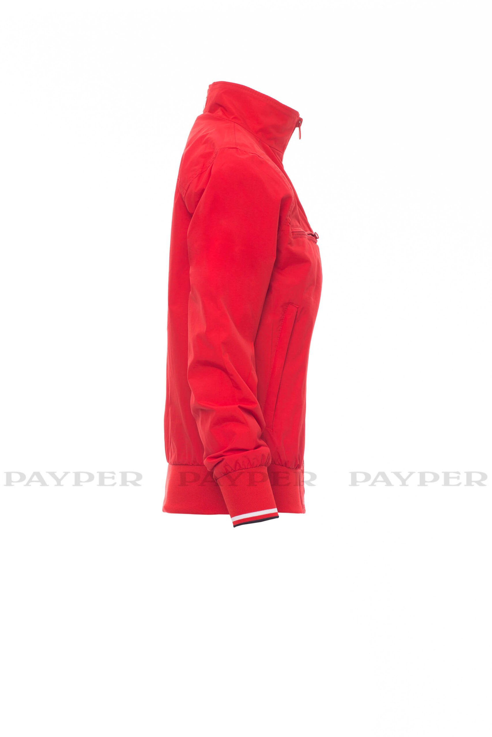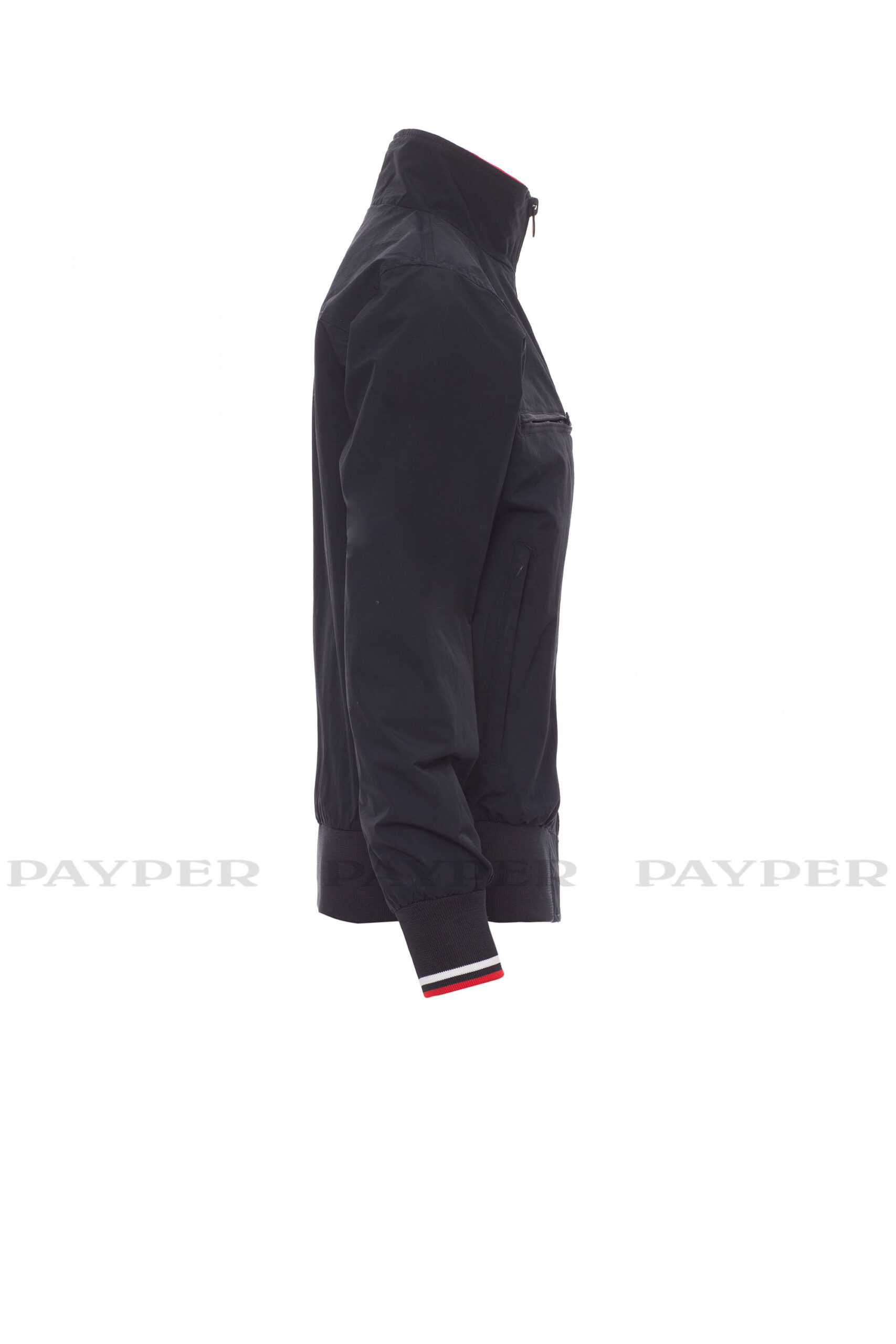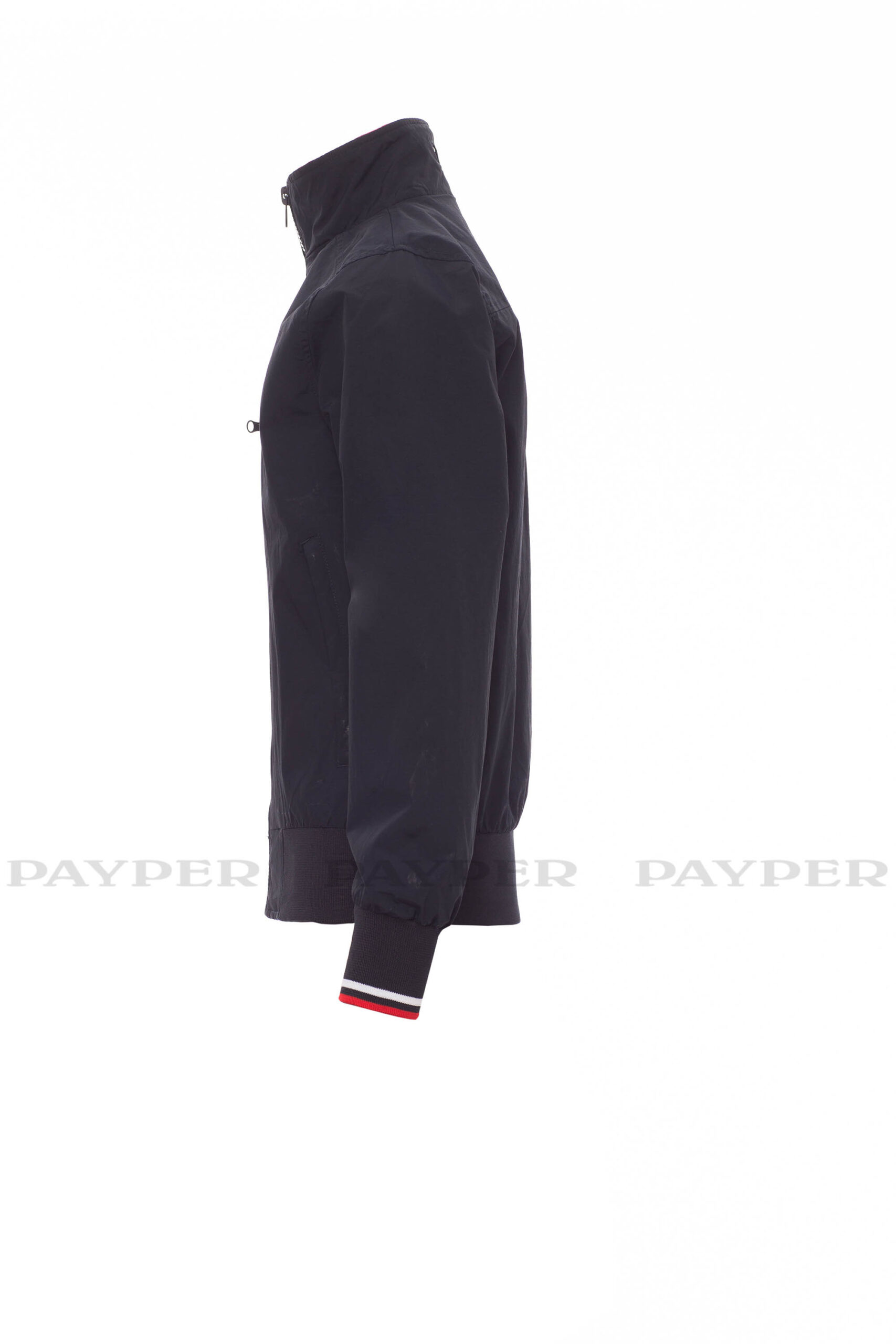 puños y cintura en tejido RIB elástico de rayas, dos bolsillos exteriores con cremallera de plástico.