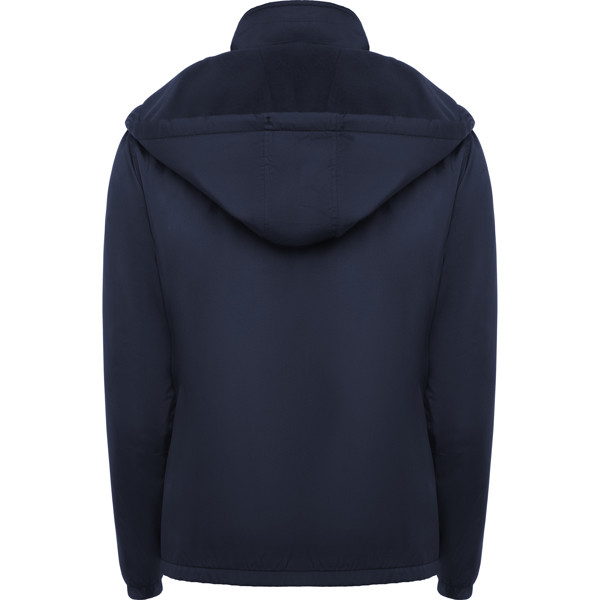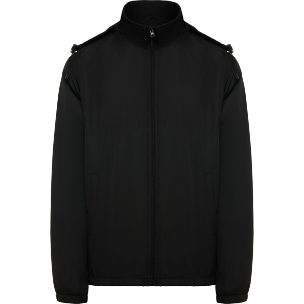Chaqueta ligera resiste al agua con cremallera frontal. Protector de barbilla. Capucha con cremallera extraíble y ajustadores elásticos. Puños engomados. Bolsillos laterales con cremallera y ribeteados en el mismo tejido. Bolsillo interior en pecho izquierdo. Forro interior en micropolar al tono.