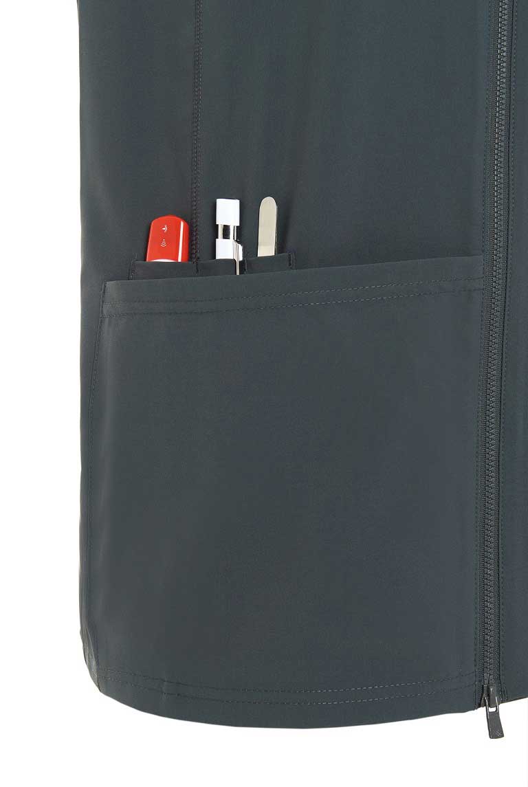 Bolsillos inferiores de gran capacidad, bolsillo interior multifunción y bolsillo en pecho con cremallera