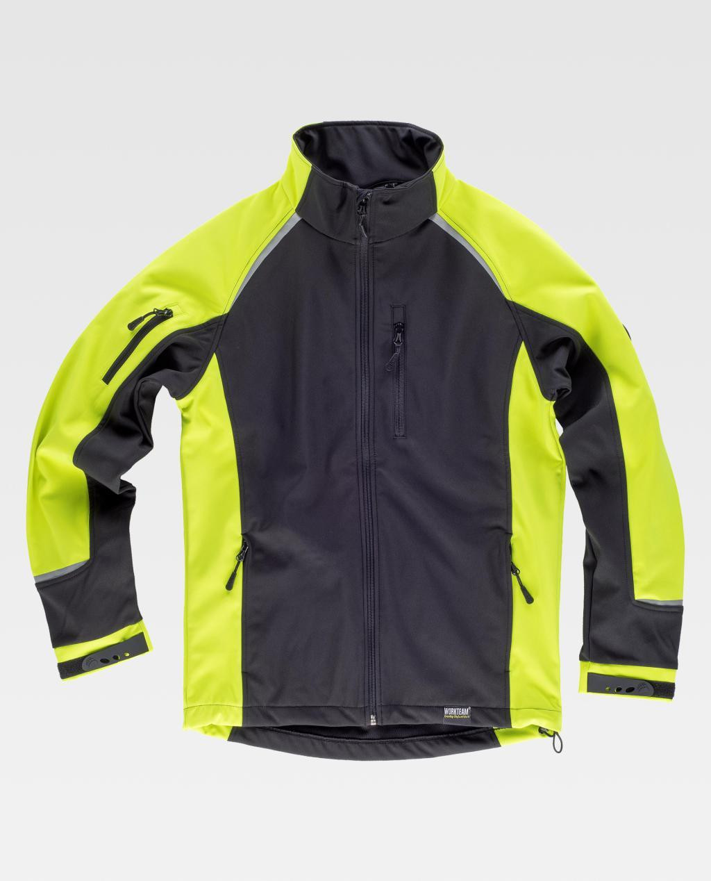 Chaqueta softshell sport unisex combinada con detalles reflectantes.