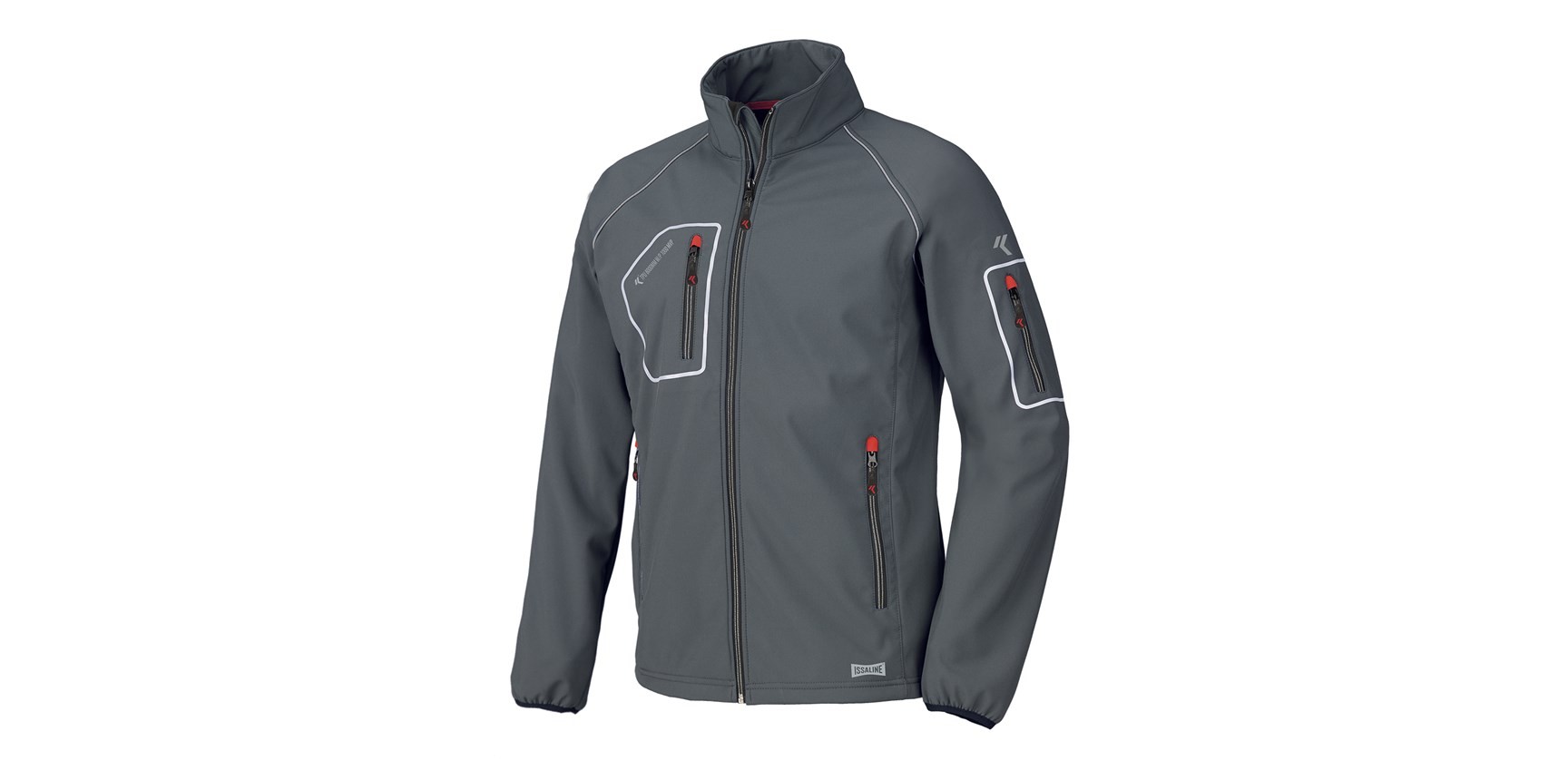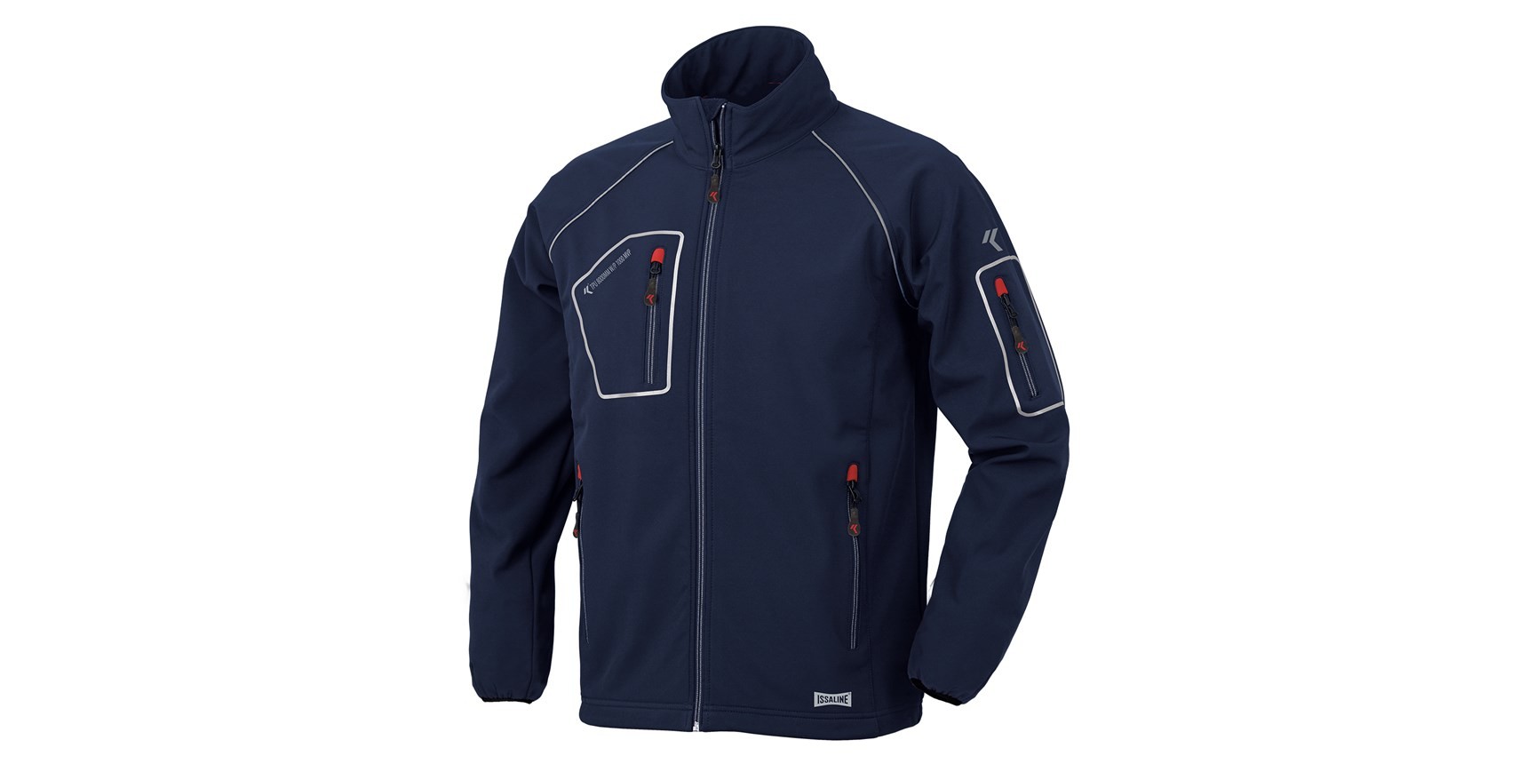 Chaqueta en tejido softshell con 4 bolsillos en tejido particularmente suave y al mismo tiempo técnico.