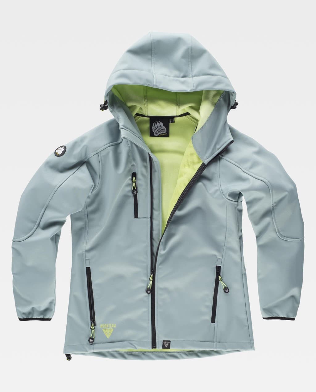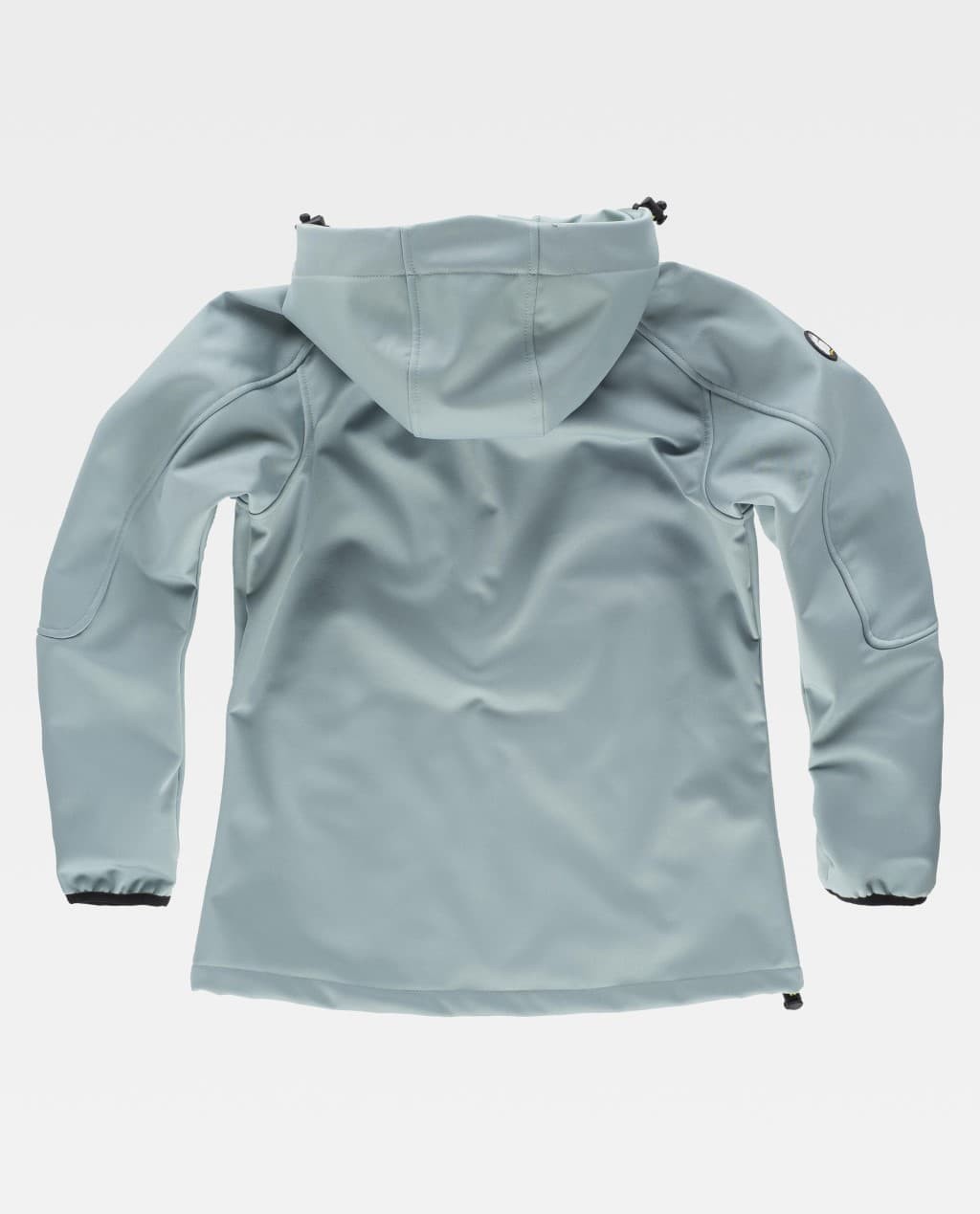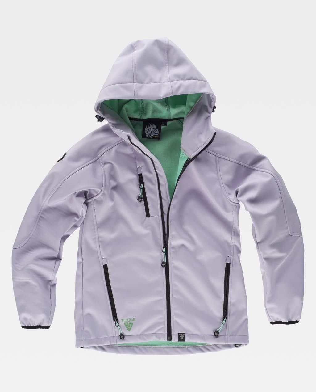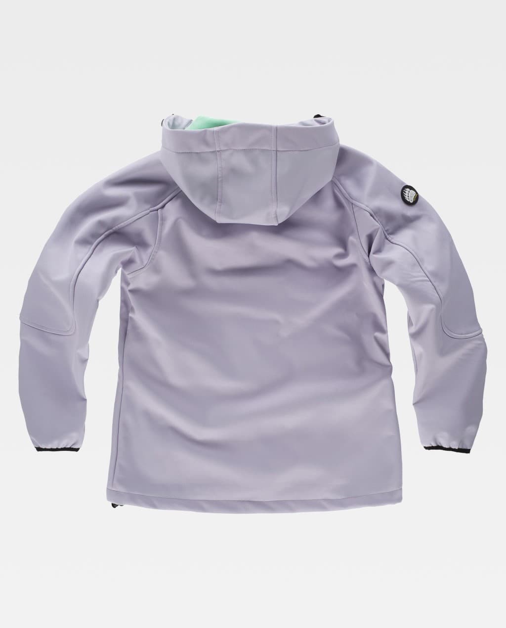 Chaqueta softshell de mujer con capucha y colores combinados.