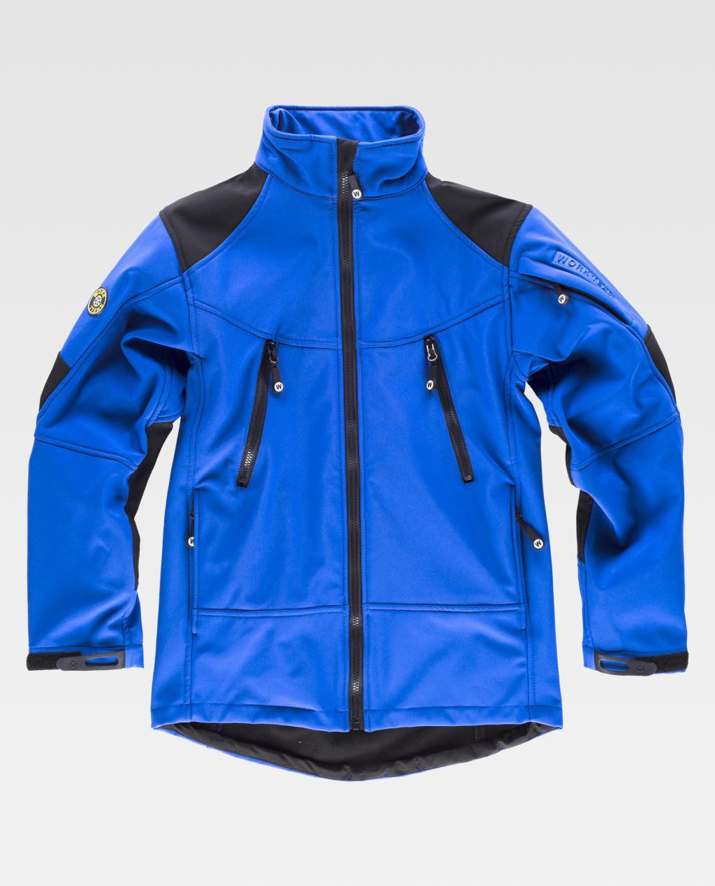 Chaqueta Workshell combinada. Cuello alto y cierre de cremallera de nylon.