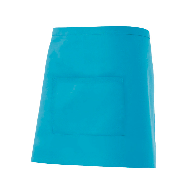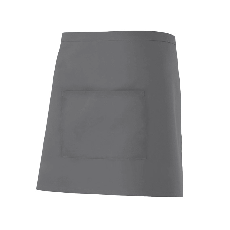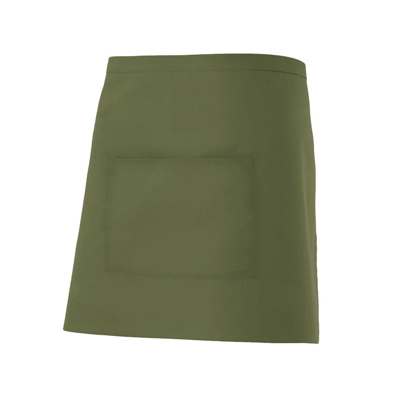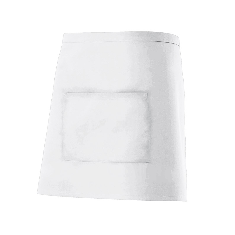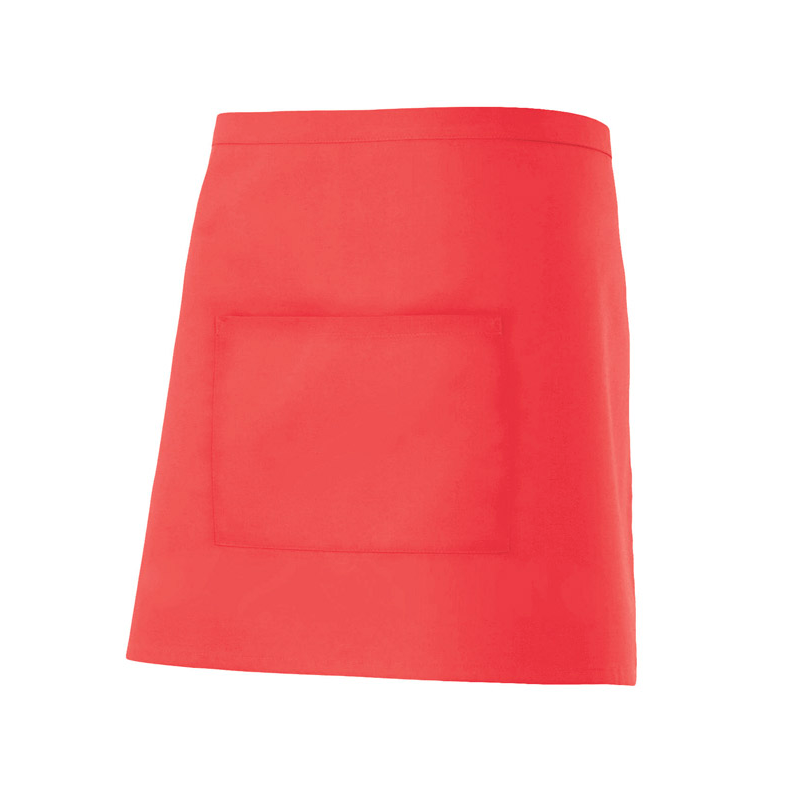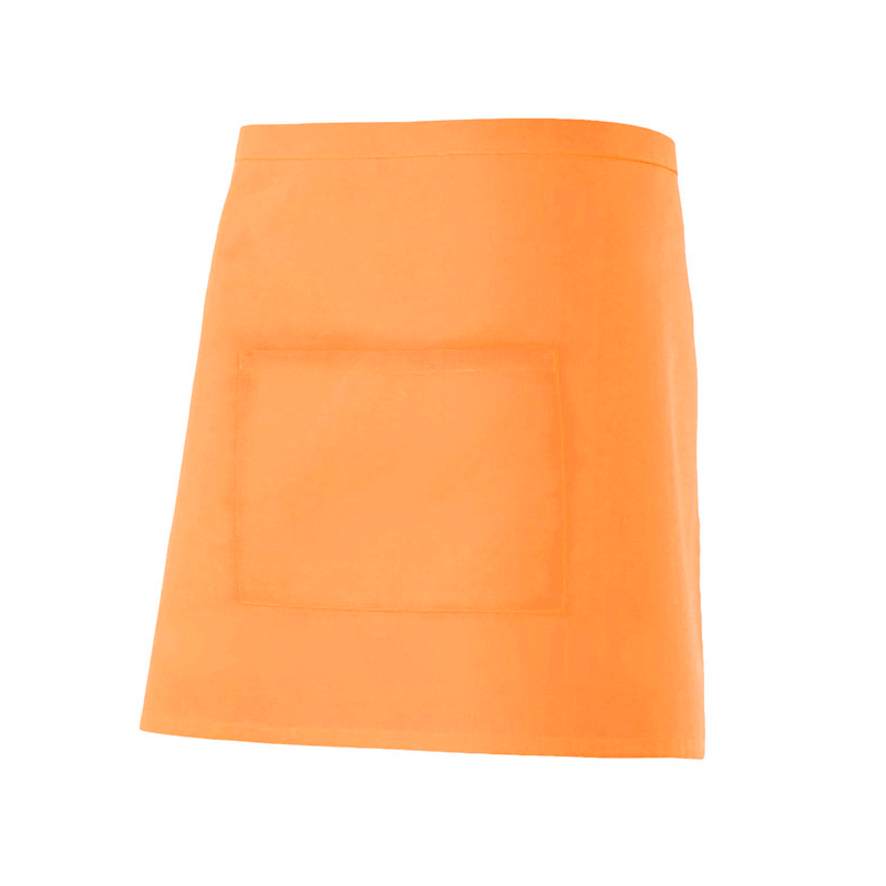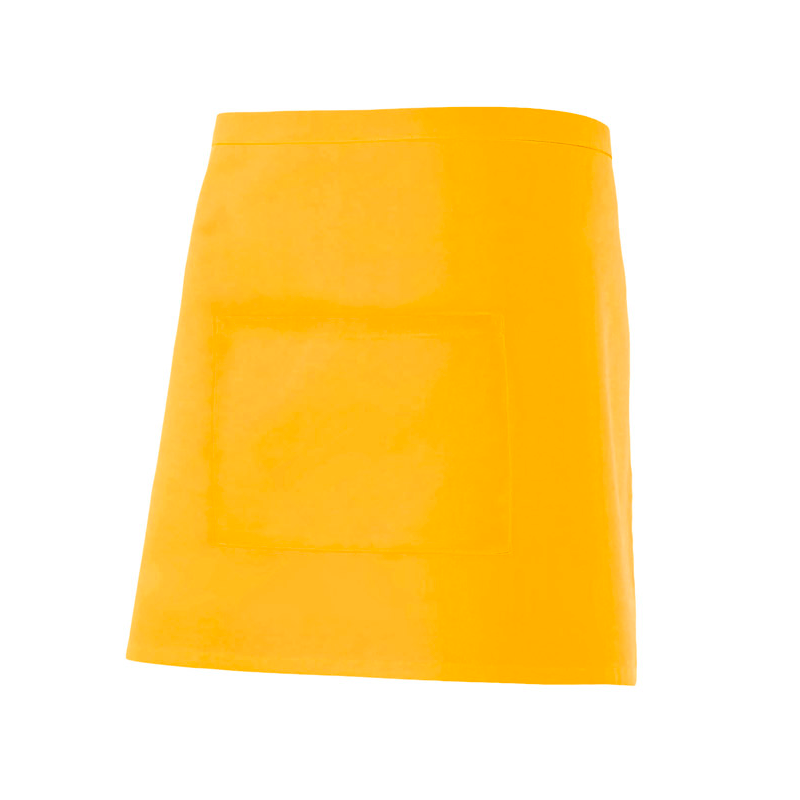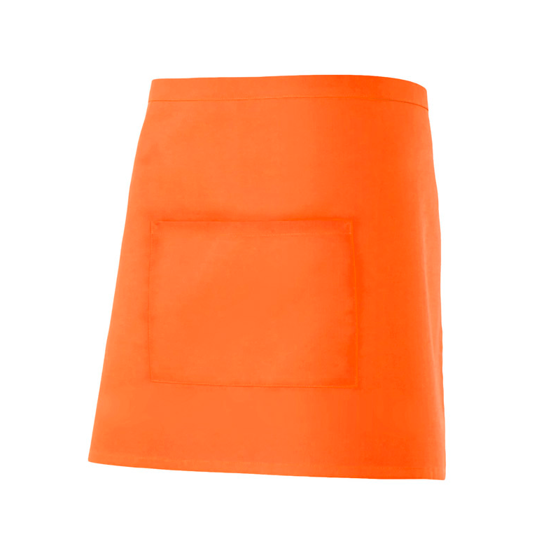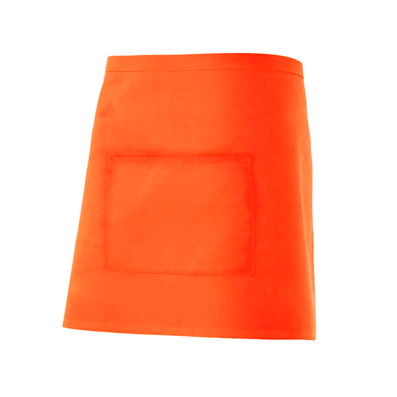 Delantal corto con bolsillo en tejido de algodón y poliéster.