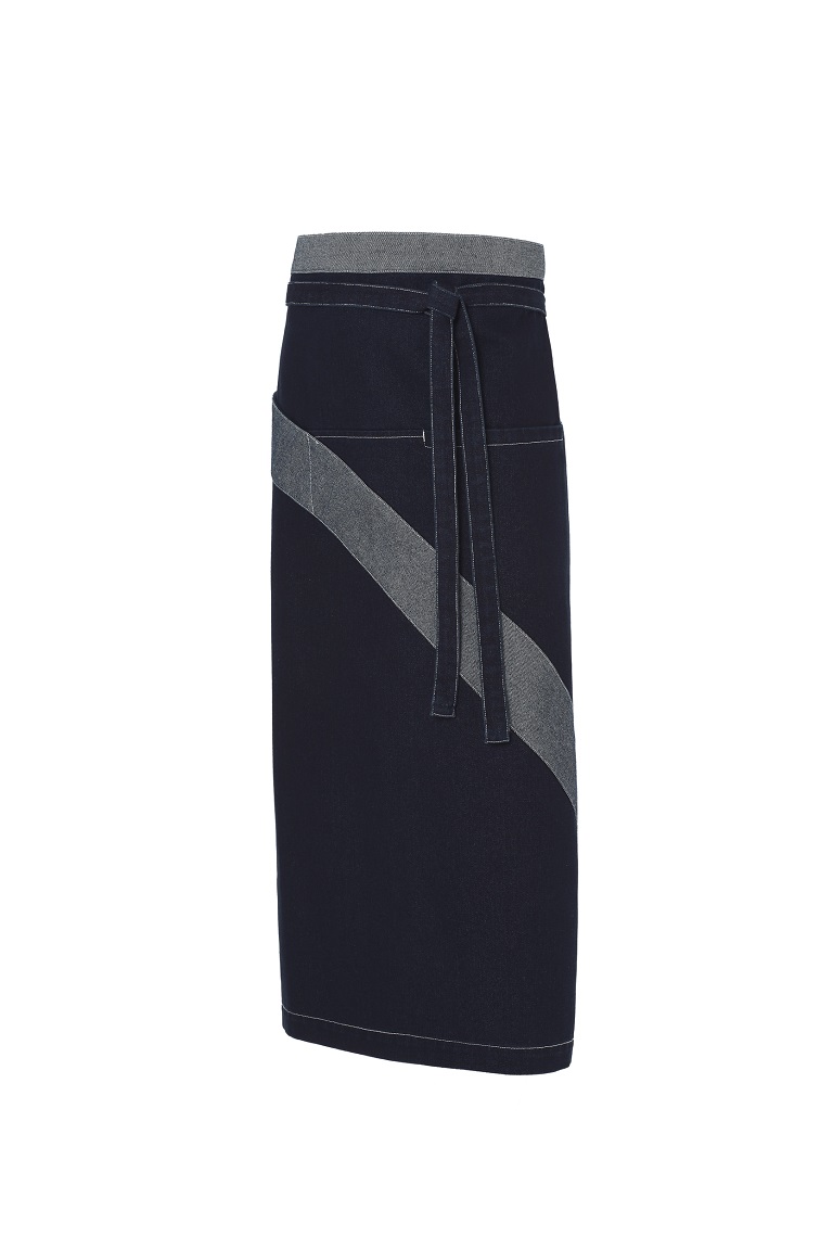 Delantal francés denim cerrado. Bolso de gran capacidad, multiapartado