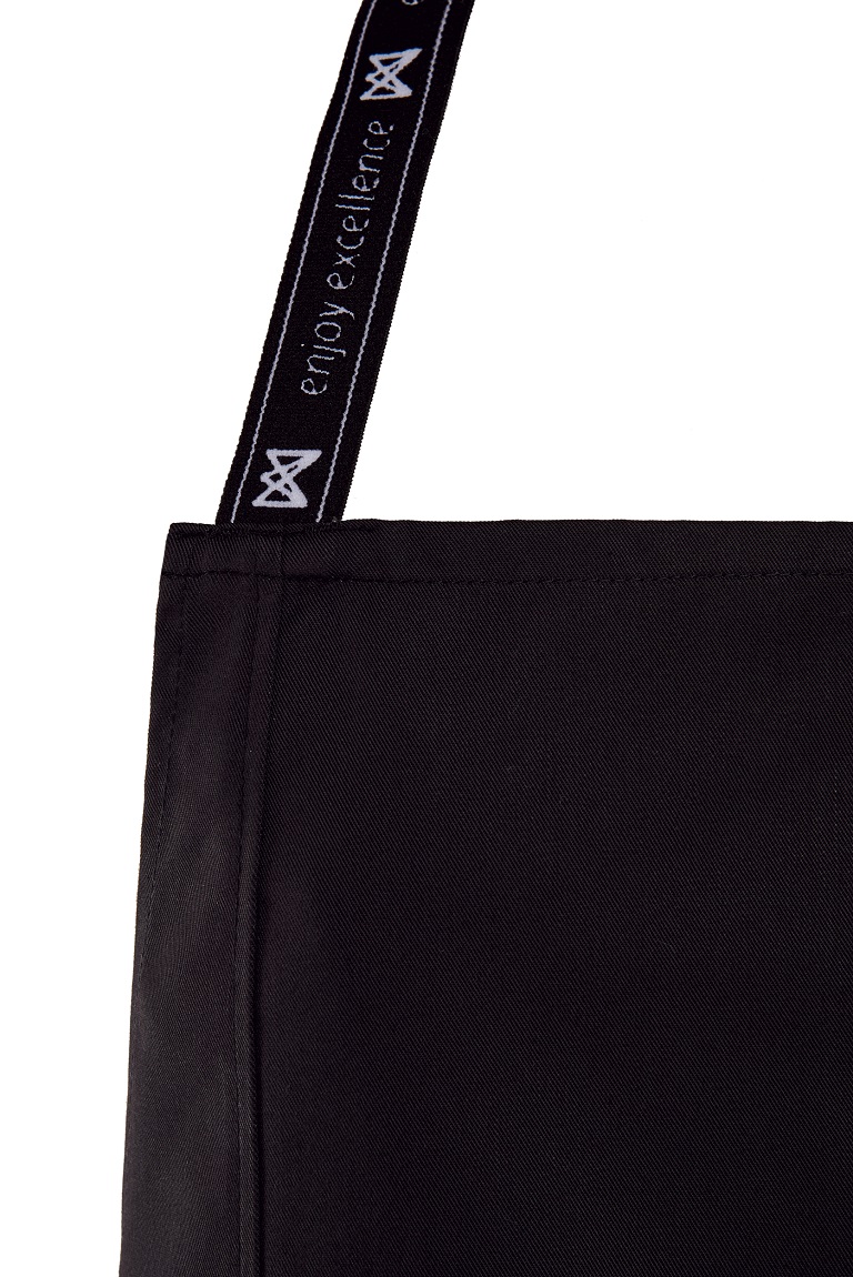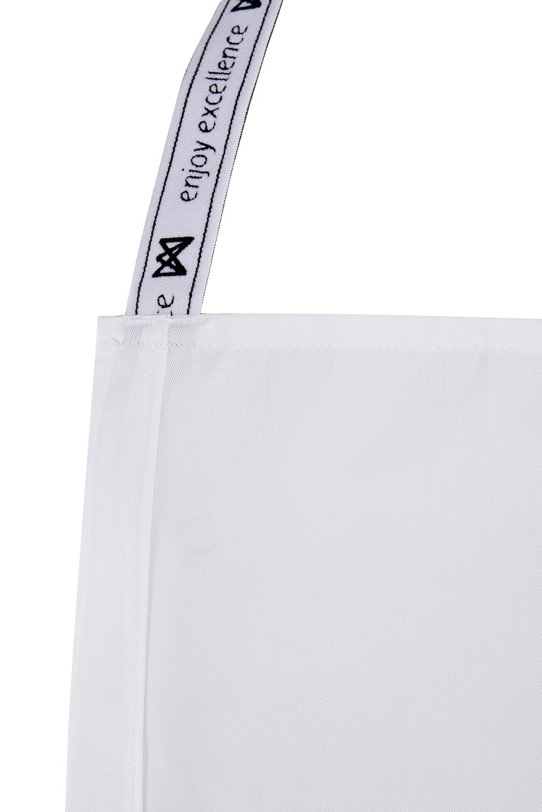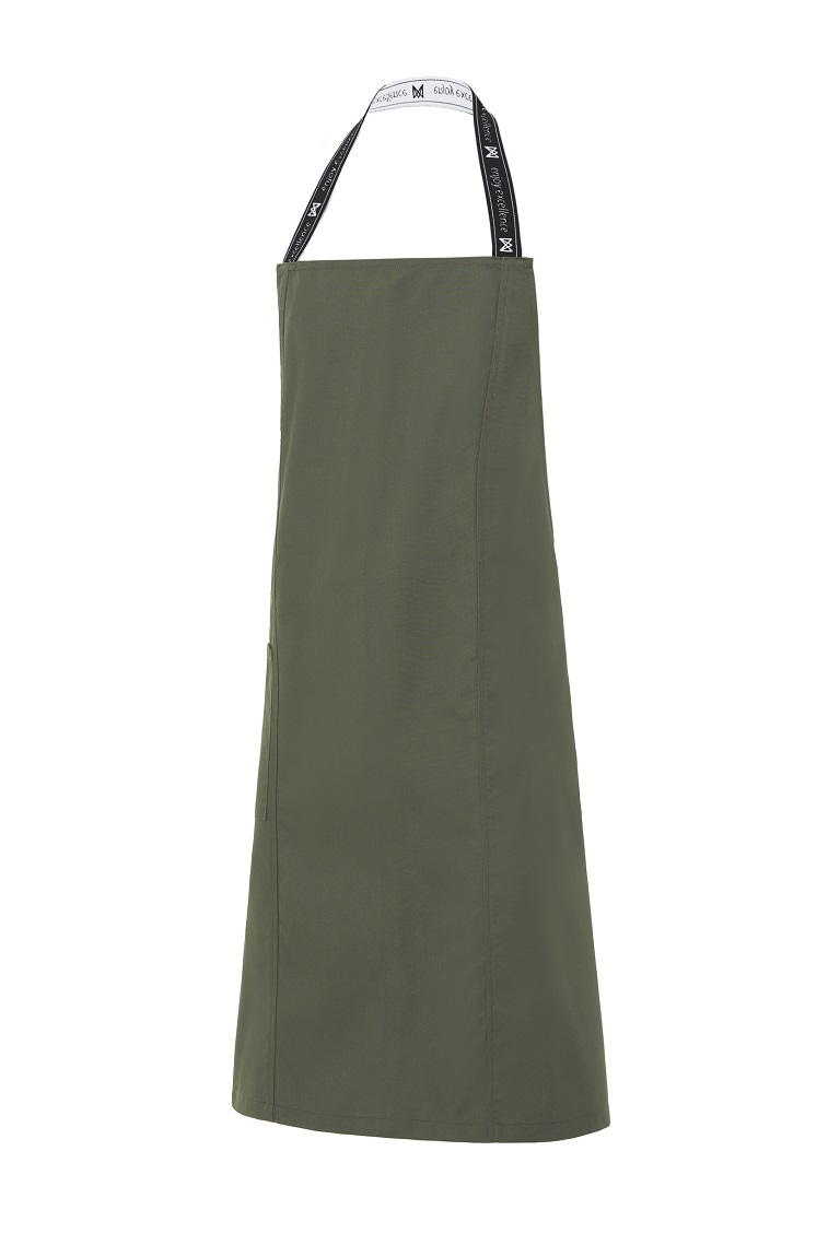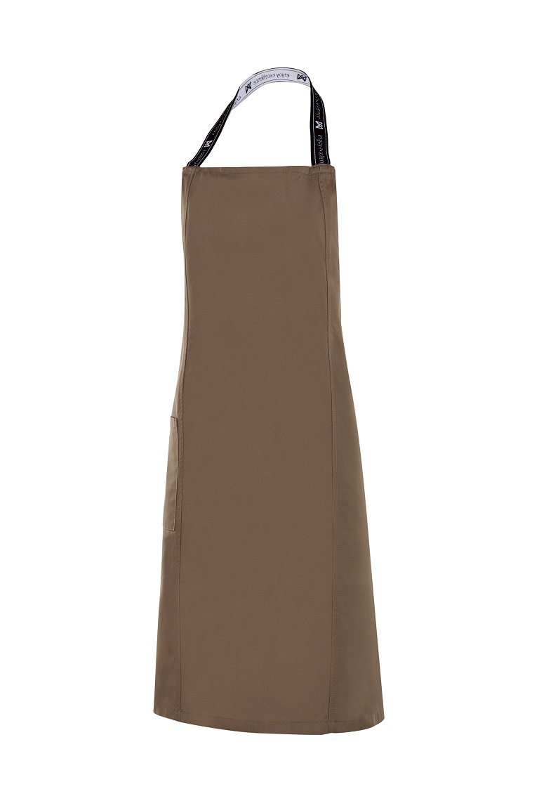 Delantal peto con tira en cuello de goma elástica con claim de la marca