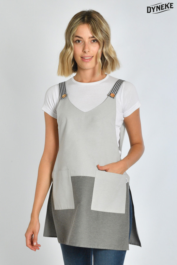 Dos amplios bolsillos. Se abrocha con botones regulables a ambos lados para entallar la prenda.