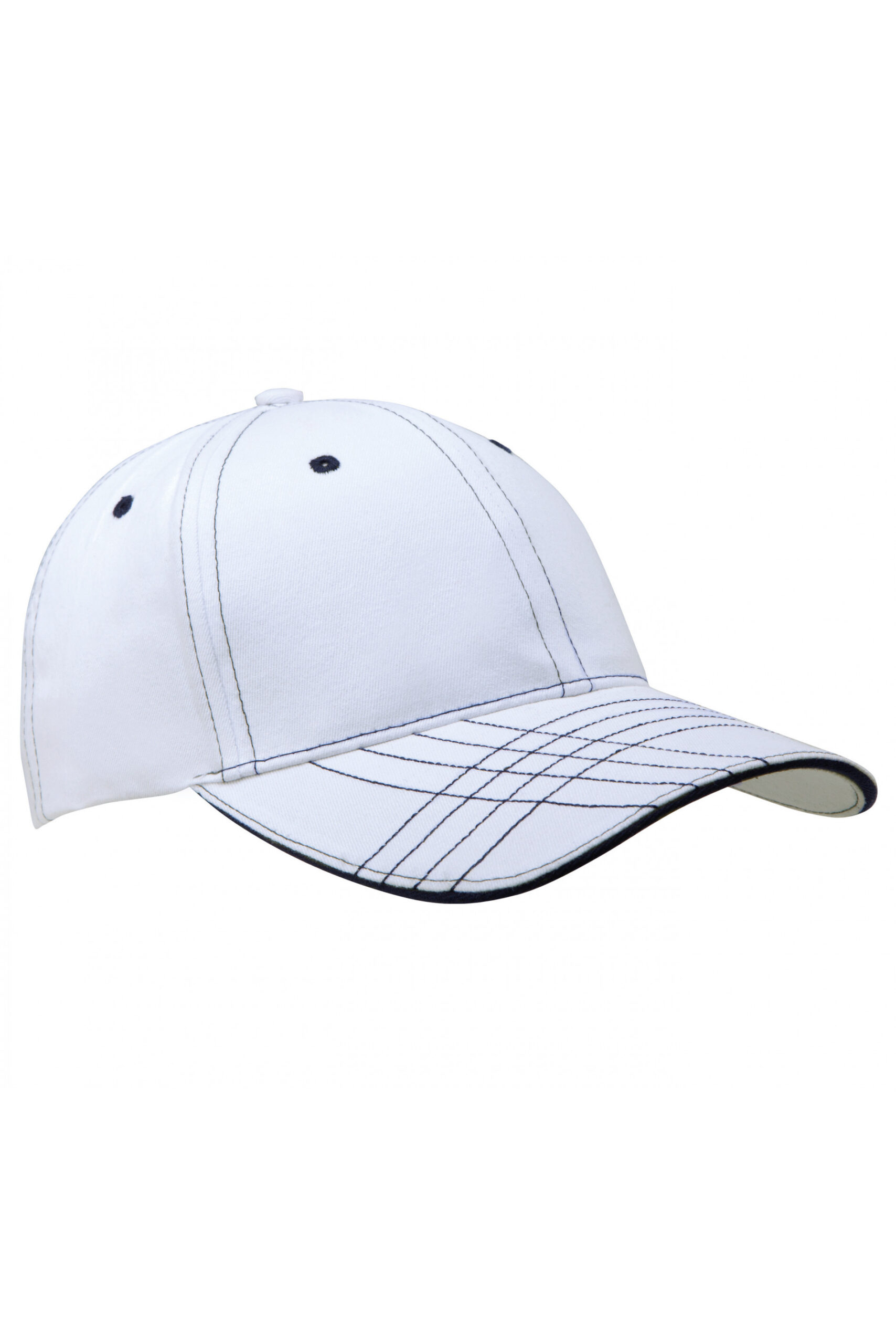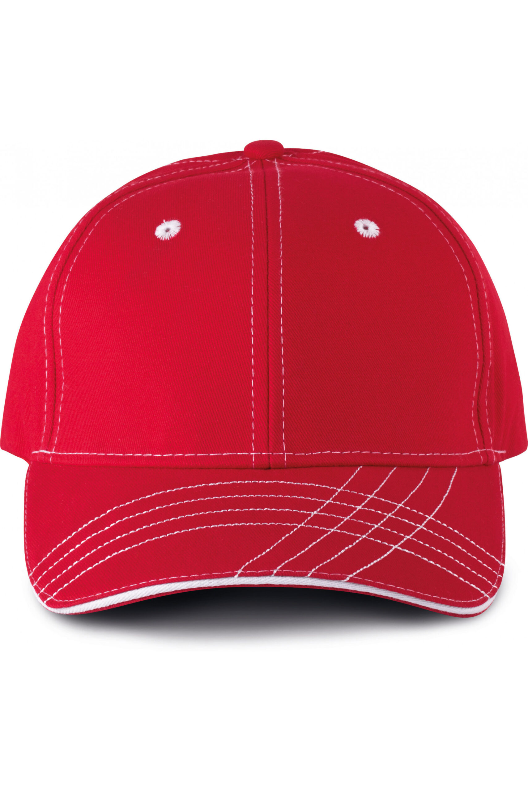 Gorra de 6 paneles con pespuntes a contraste y cierre con hebilla metálica.