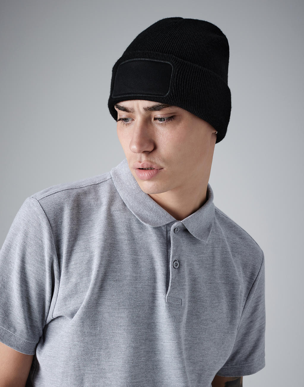 Gorro con dobladillo y parche para logo