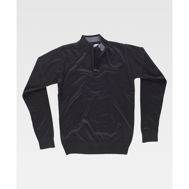 Jersey de punto fino Workteam. Cuello alto con cierre de cremallera. Cintura y puños elásticos.