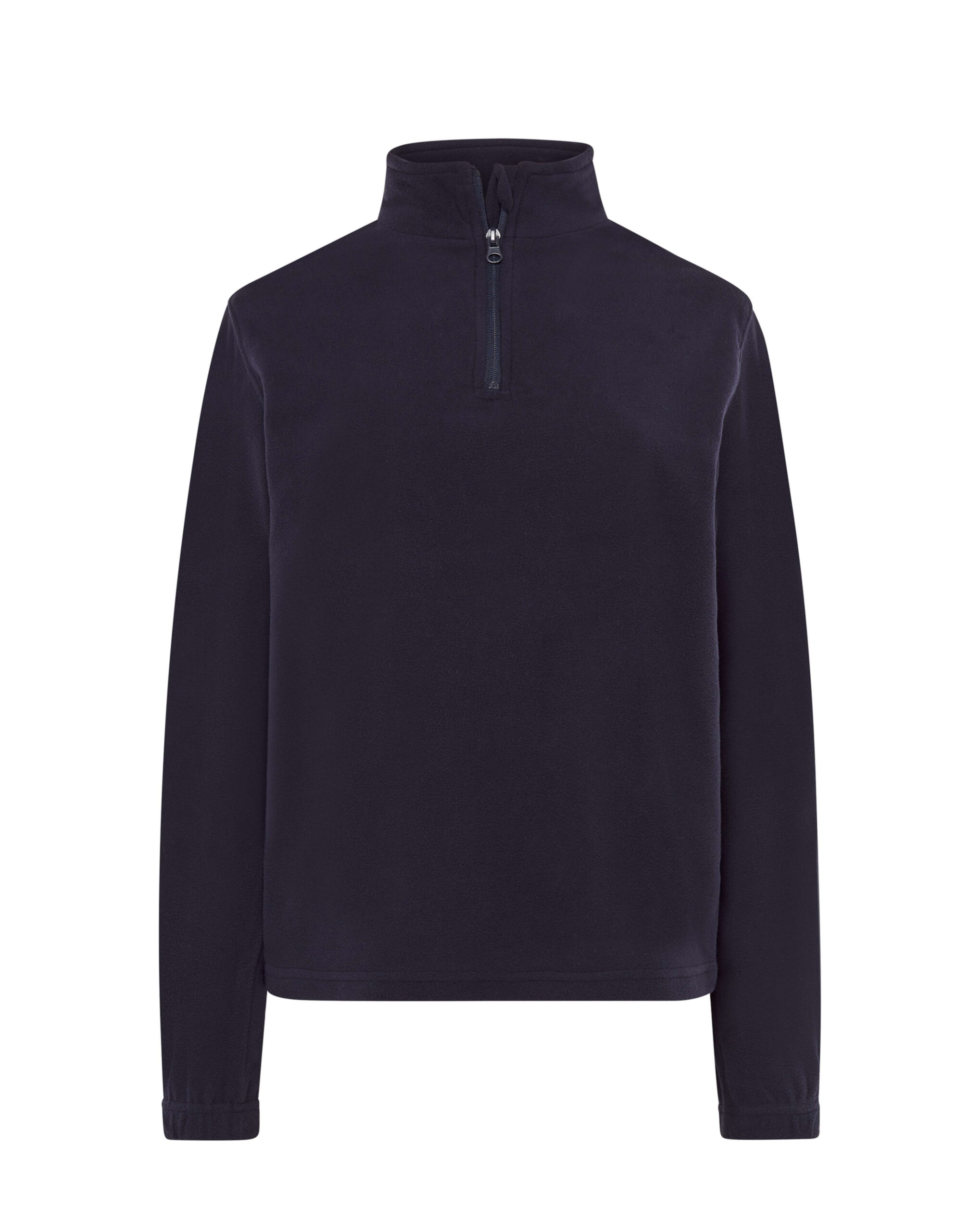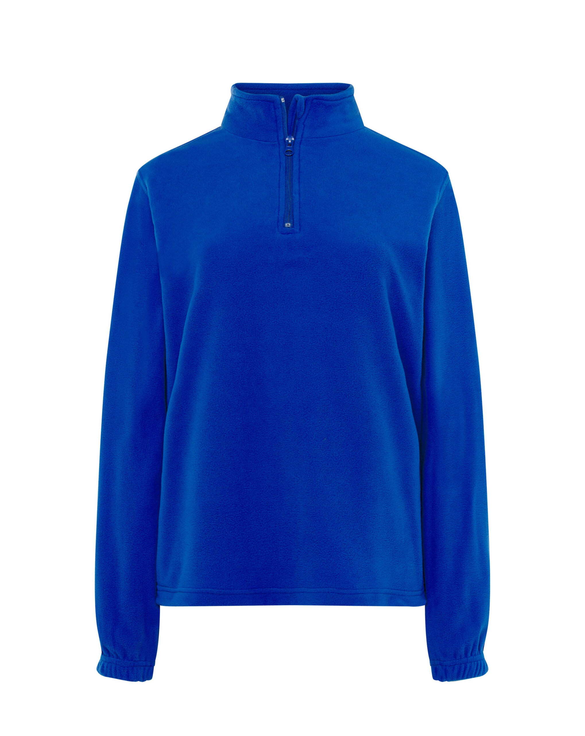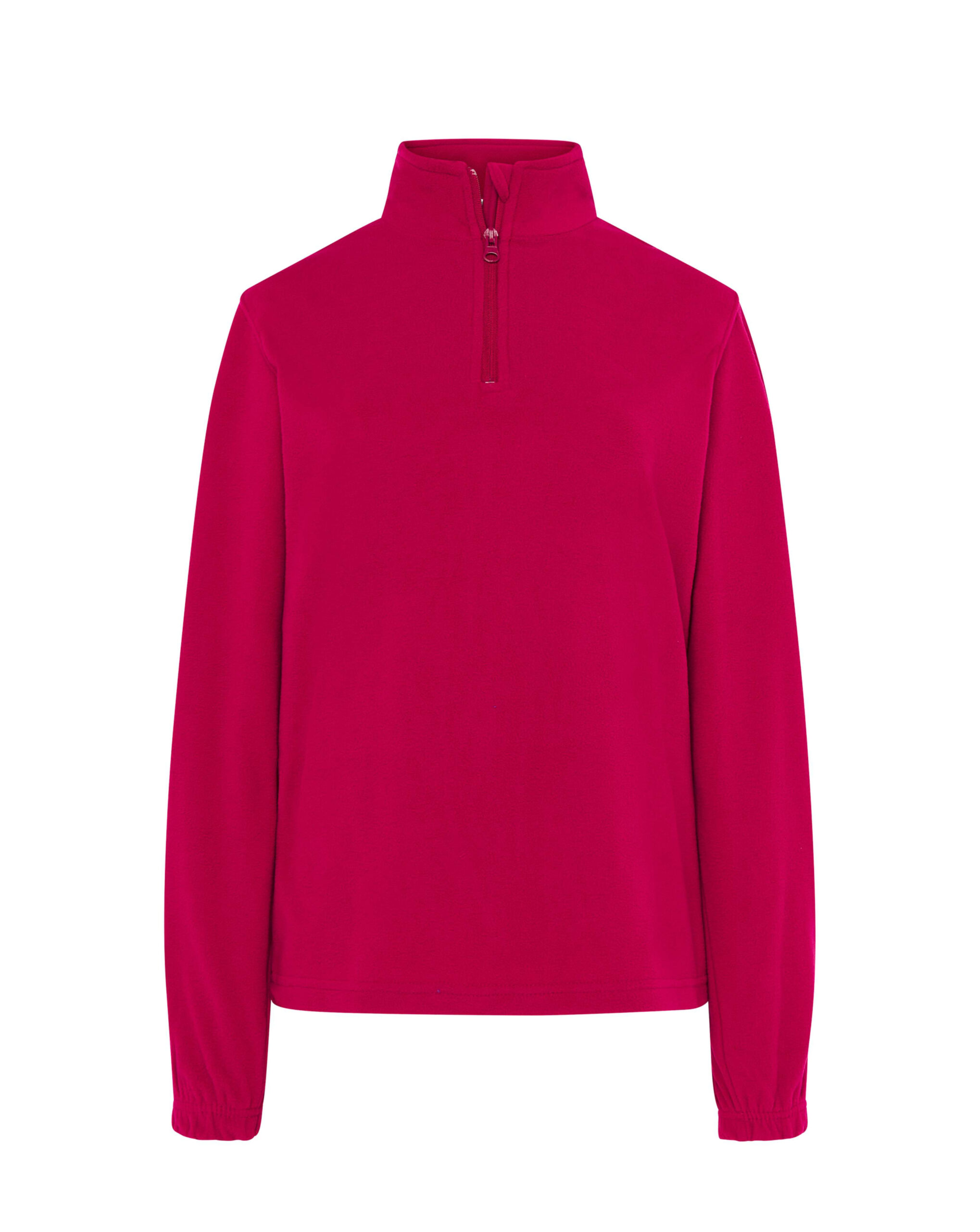 Micro polar de mujer cálido y suave, ligeramente entallado, con media cremallera y elástico en puños, para actividades en exteriores.