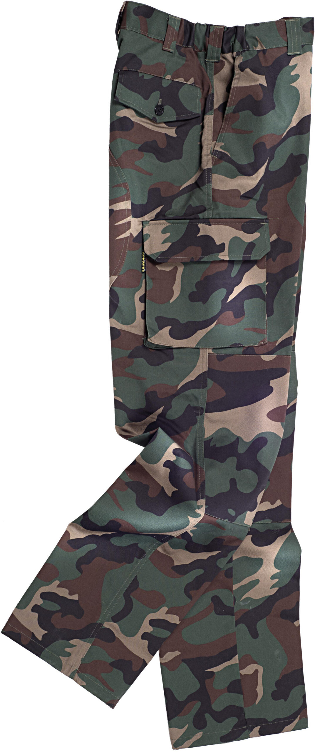Pantalón Workteam de camuflaje con refuerzos y multibolsillos.