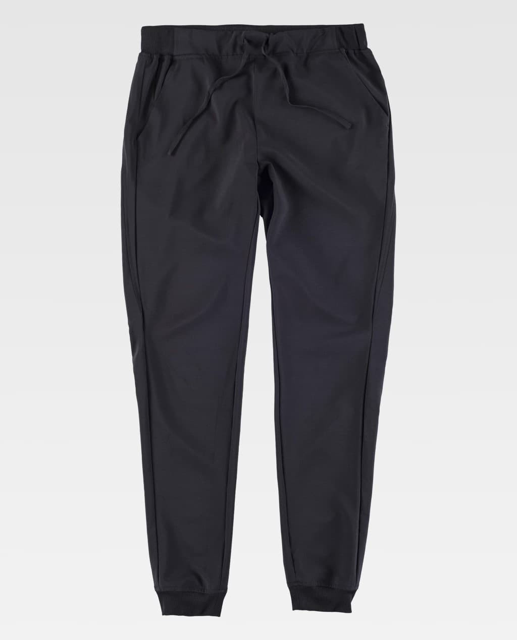 Pantalón con tejido elástico. Dos bolsos de abertura inclinada en los costados. Elástico en bajos. Elástico en la cintura y ajuste de cordón.