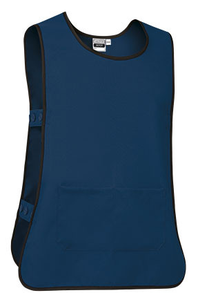 Casulla abierta ajustable, confeccionada en tejido strech, resistente, preparado para colocar fácilmente sobre la ropa. Amplio cuello redondo y tirantes anchos. Ribete en todo el contorno de la prenda. Ajuste en los laterales mediante trabillas y botones con tres posiciones. Incluye un bolsillo grande partido en dos departamentos en la zona central delantera.
