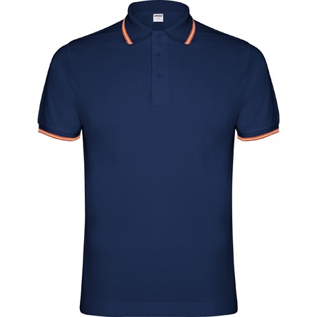 Polo de manga corta con tratamiento antipilling. Punto piqué. Cuello y mangas tejidos 1×1 a contraste de color. Tapeta de 3 botones. Cubrecosturas en cuello del mismo tejido y media luna interior. Detalle bandera bordada en la espalda. Bolsillo opcional. Admite lavado a 60º