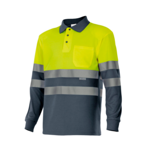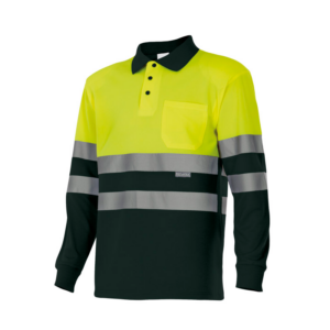 • Por un lado conserva la naturaleza suave del algodón y por otro la resistencia y durabilidad del poliéster. • La prenda dispone de tejido de malla en las axilas lo cuál ayuda a la evaporación rápida del sudor. • Dispone de 3 botones de plástico en el cuello en color de contraste. • Un bolsillo en el pecho con cierre por velcro. • El cuello y puños están confeccionados en tejido de canalé en el mismo color de contraste que la parte baja de la prenda. • Cuenta con 2 bandas reflectantes segmentadas de color gris/plata que rodean el torso. • Lavado a temperatura máxima 40º – Se puede planchar máximo 150°C – No usar lejía – No permite limpieza en seco – No utilizar secadora – Max 25X.