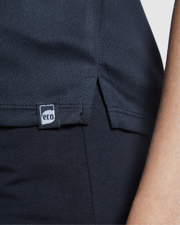 Polo técnico de mujer entallado de manga corta en poliéster reciclado antibacteriano.