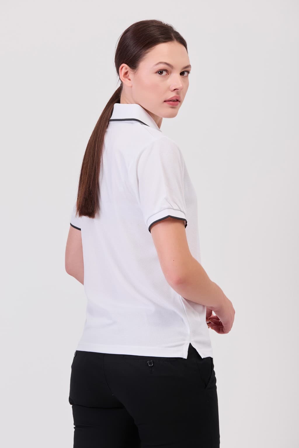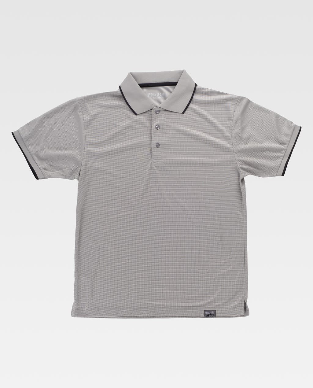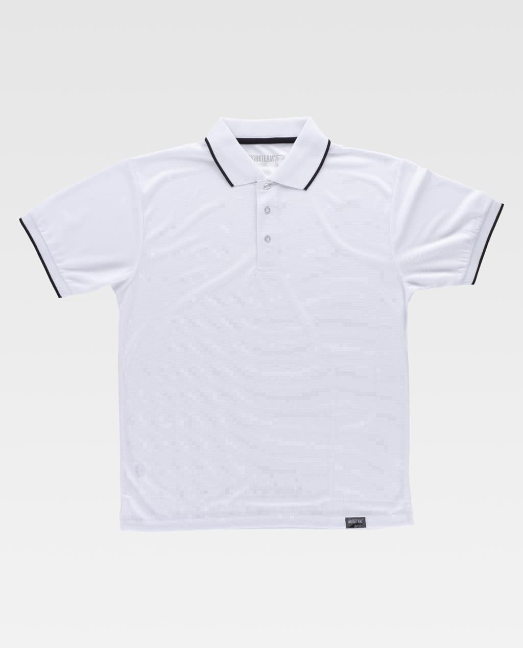Tejido fresco y poroso que permite una adecuada ventilación. Cuello y acabado de la manga en punto canalé.