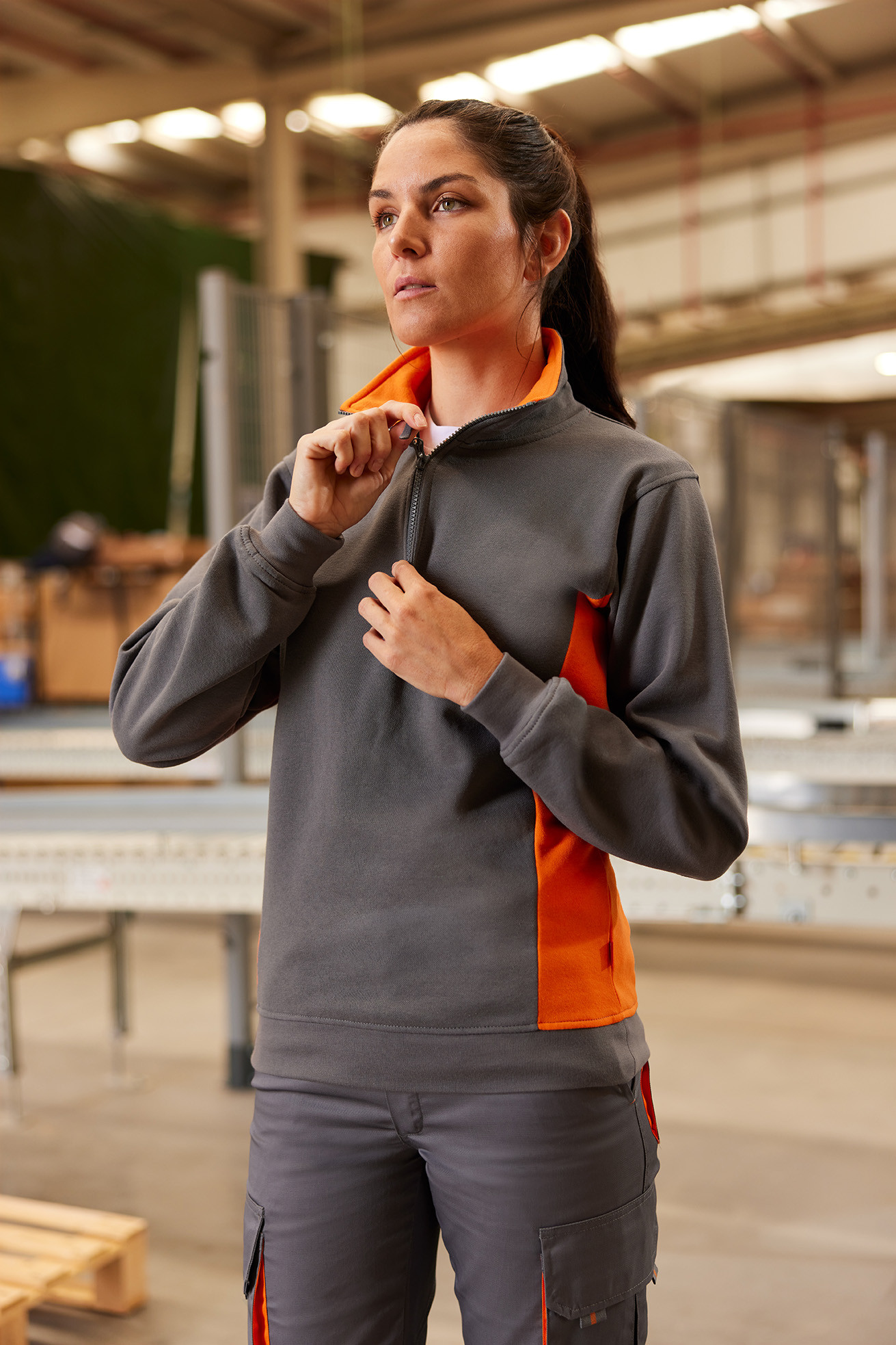 Sudadera de trabajo Velilla combinada de cuello alto con media cremallera.