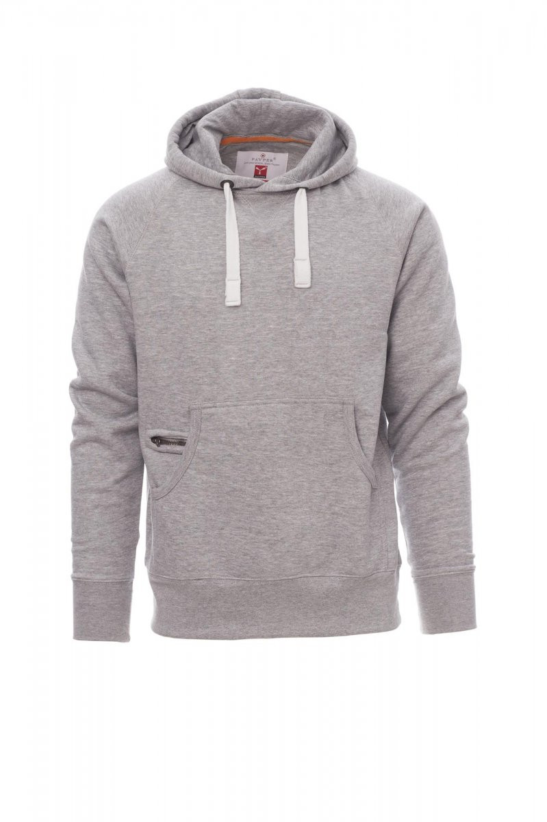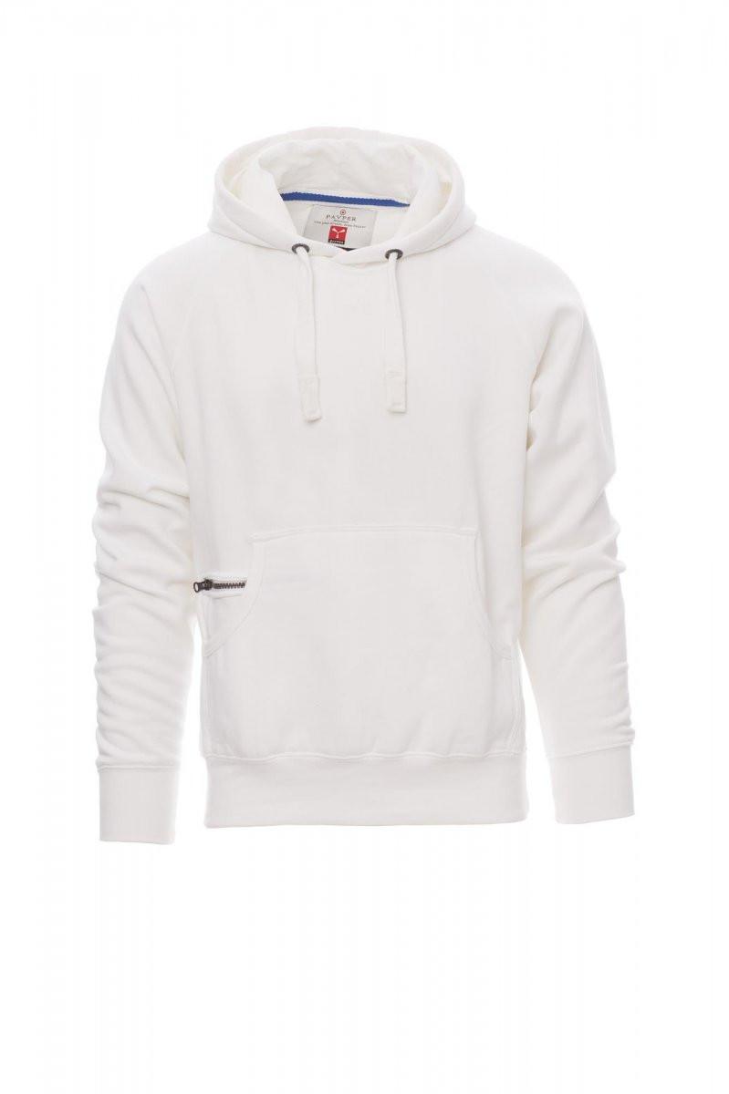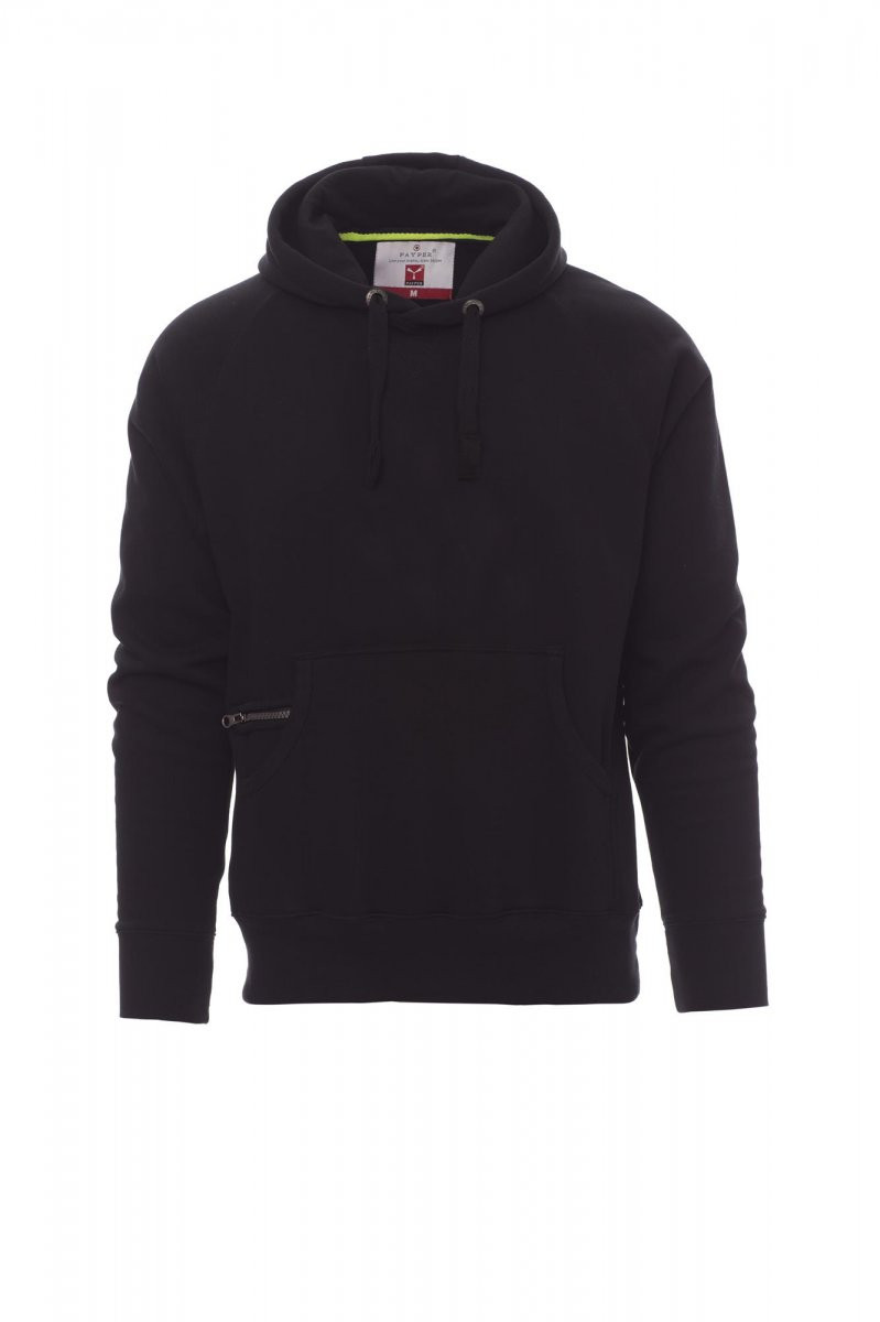 mangas ranglán, pespunte en cuello de pico, bolsillos canguro, pequeño bolsillo con cremallera, puños y dobladillo elásticos, costuras reforzadas.