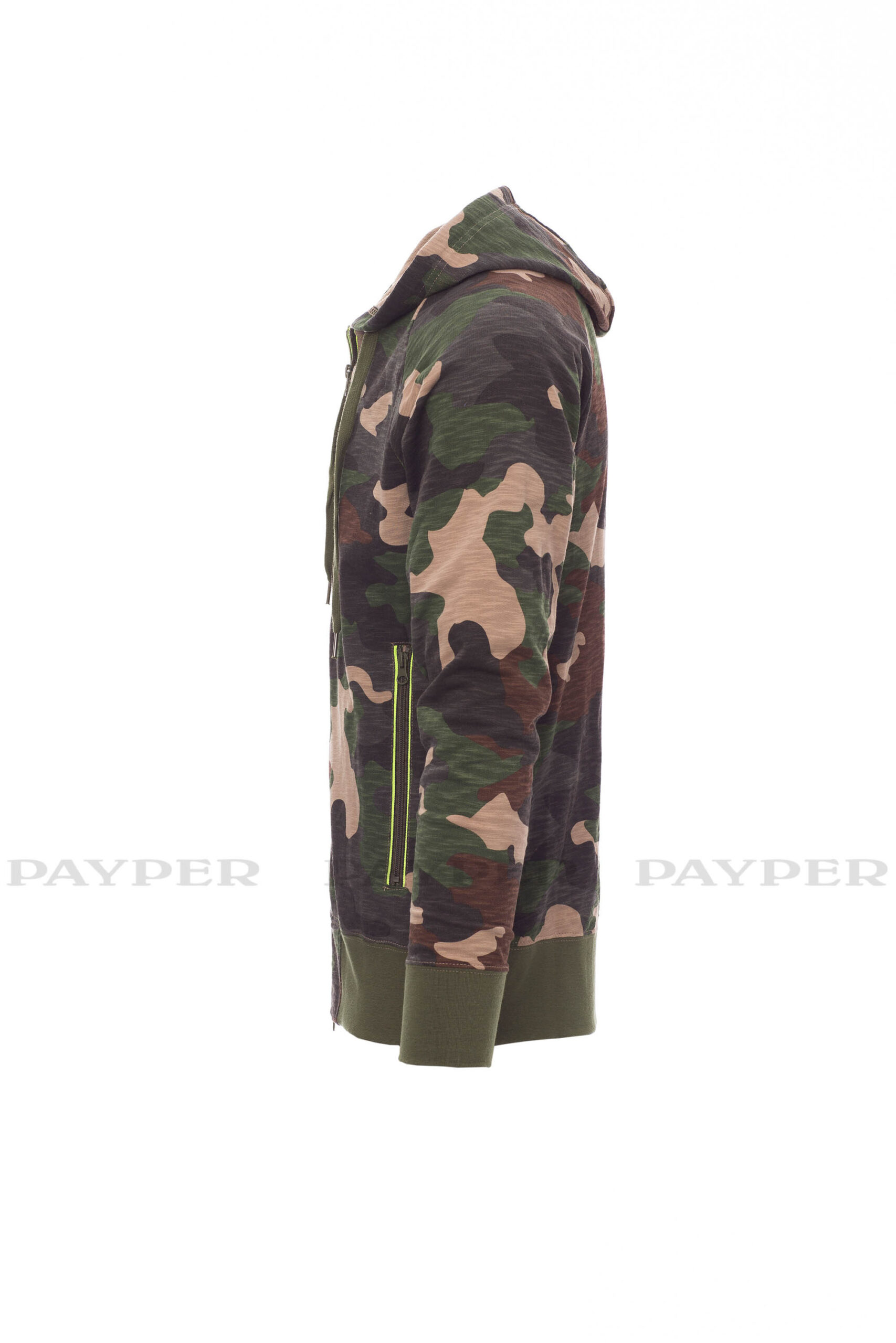 puños y dobladillo elásticos, y dos bolsillos delanteros con cremallera.