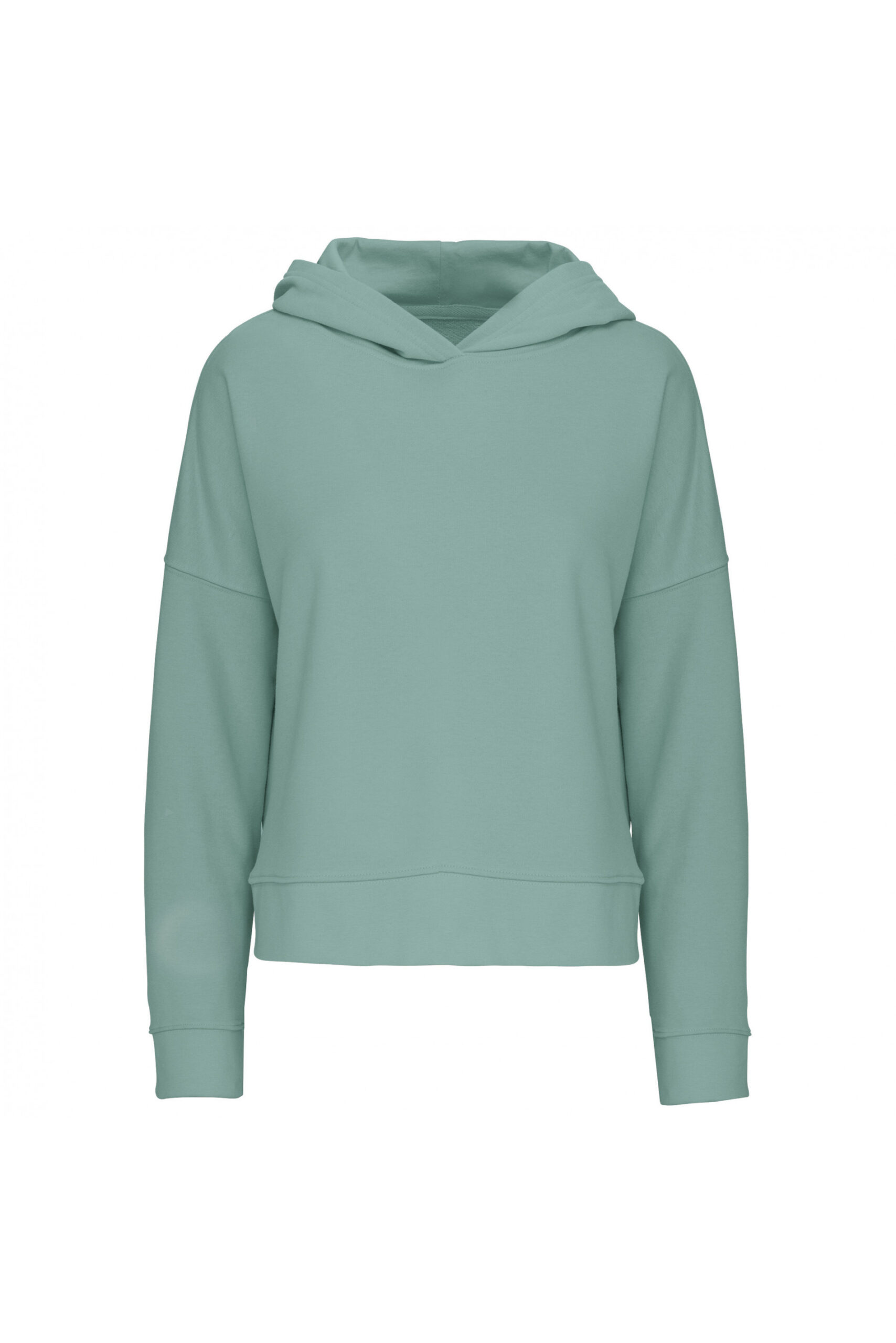 91% algodón orgánico / 9% poliéster. 270 gramos. Felpa no perchada «French Terry». Tacto ultrasuave. Mangas montadas. Corte suelto y distendido con capucha forrada de tejido jersey. Tira cubrecosturas de sarga. Canalé en puños y bajo de la prenda. Sin etiqueta de marca en el cuello, únicamente una etiqueta con la talla para facilitar la personalización.Certificado STANDARD 100 by OEKO-TEX®N° CQ1007/7, IFTH