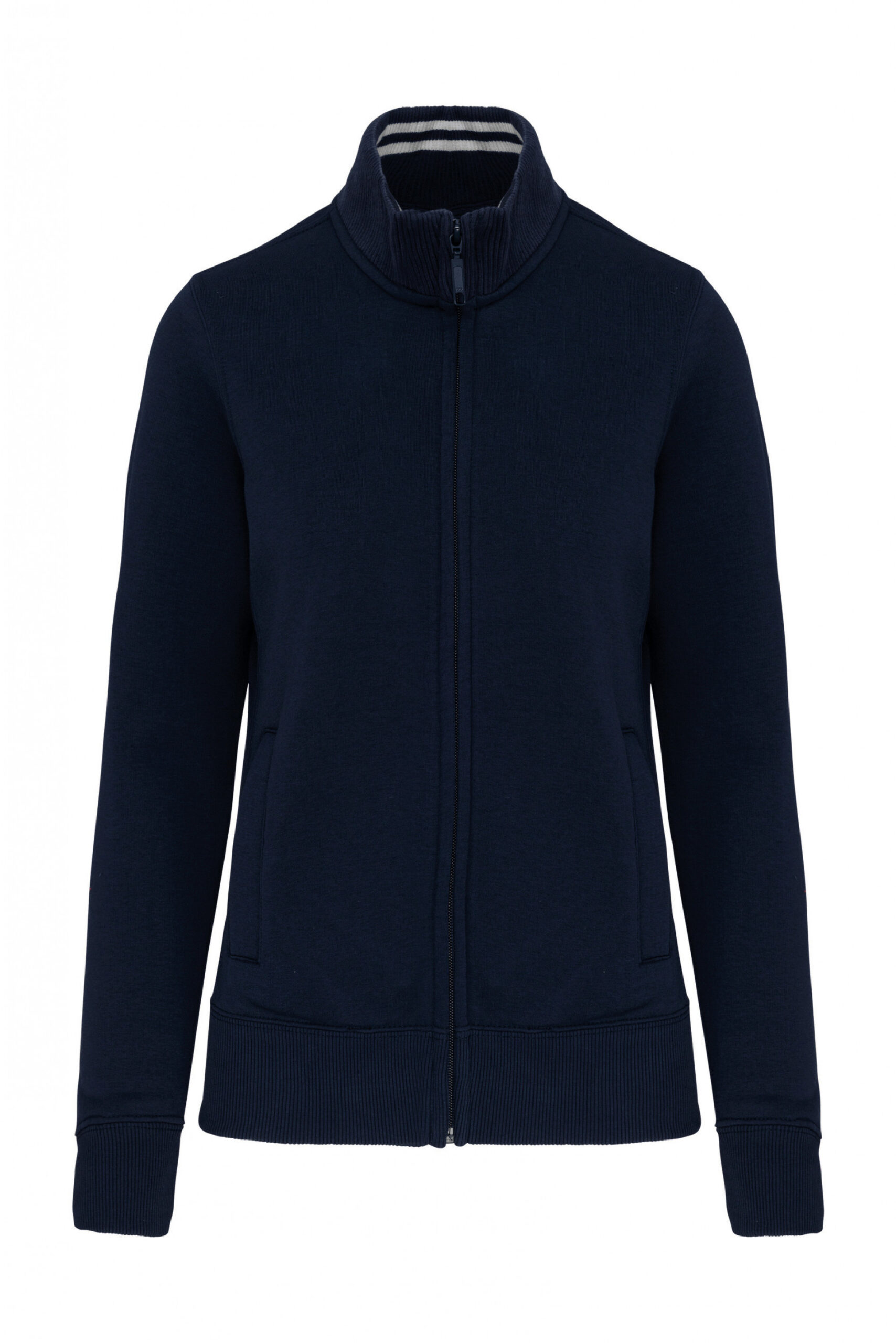 80% algodón peinado / 20% poliéster 360 gramos. LSF «Low Shrinkage Fleece» – Felpa perchada y de bajo encogimiento. Lavado con silicona. Modelo entallado gracias a paneles laterales de canalé. Tira cubrecosturas de cuello a tono (salvo para el color White que viene con el tapacosutras del cuello en Oxford Grey). Interior cuello de canalé con rayas contrastadas. 2 bolsillos delanteros. Acabado canalé en puños y bajo de la prenda. Cierre con cremallera. Certificado STANDARD 100 by OEKO-TEX® N° CQ 1007/8, IFTH