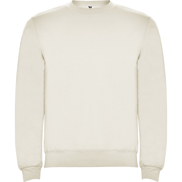 Sudadera unisex cuello redondo. Cuello, puños y cinturilla en canalé 2×1 con elastano. Cubrecosturas del mismo tejido.