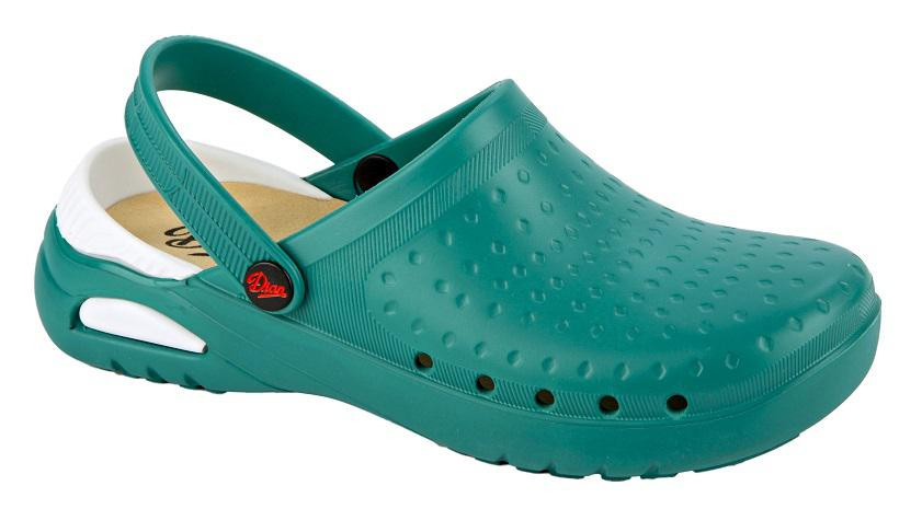 Zueco ultraligero de EVA, antibacteriano, libre de látex, monocasco, anatómico y antideslizante.