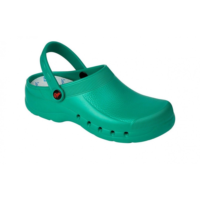 Zueco sanitario ultraligero de EVA, antibacteriano, libre de látex, monocasco, anatómico y antideslizante.